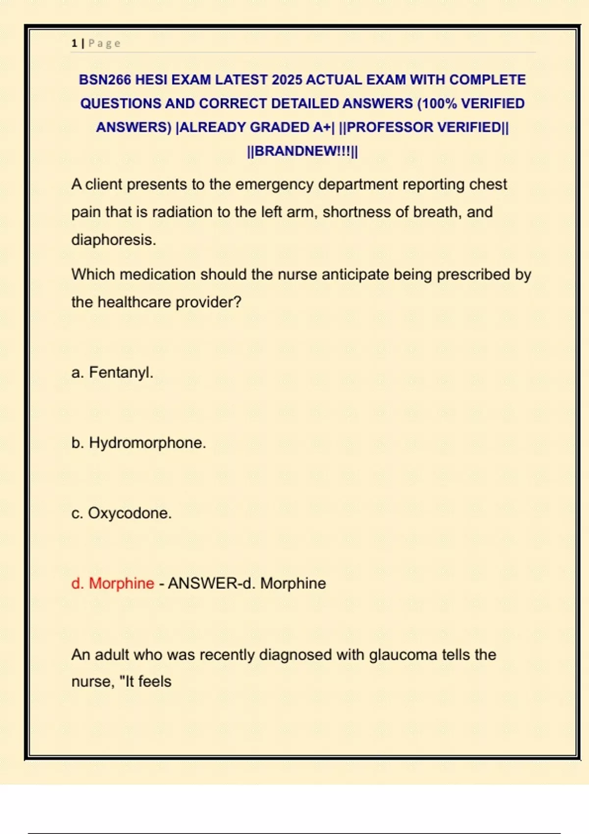 d. Morphine - ANSWER-d. Morphine