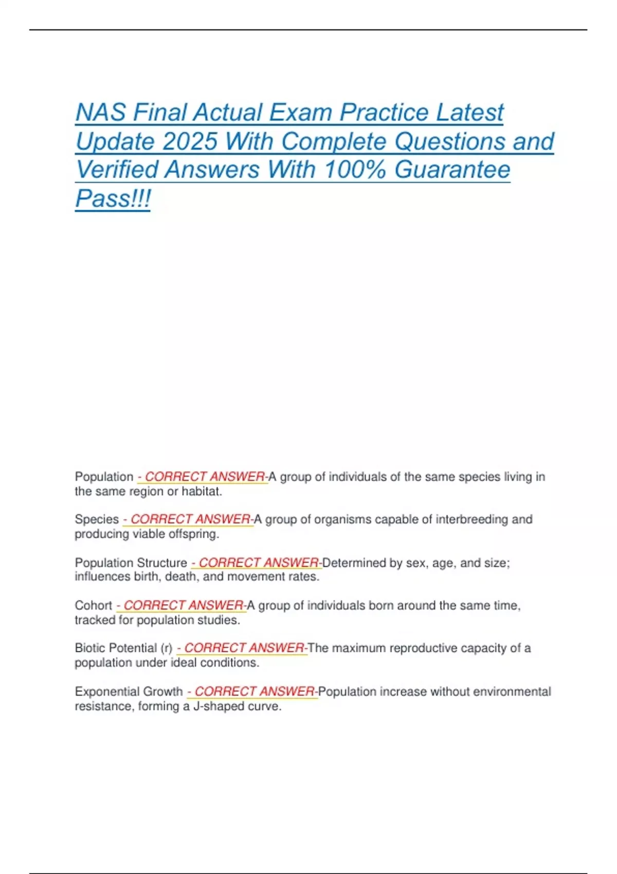 Population - CORRECT ANSWER-A group of individuals of the same species living in