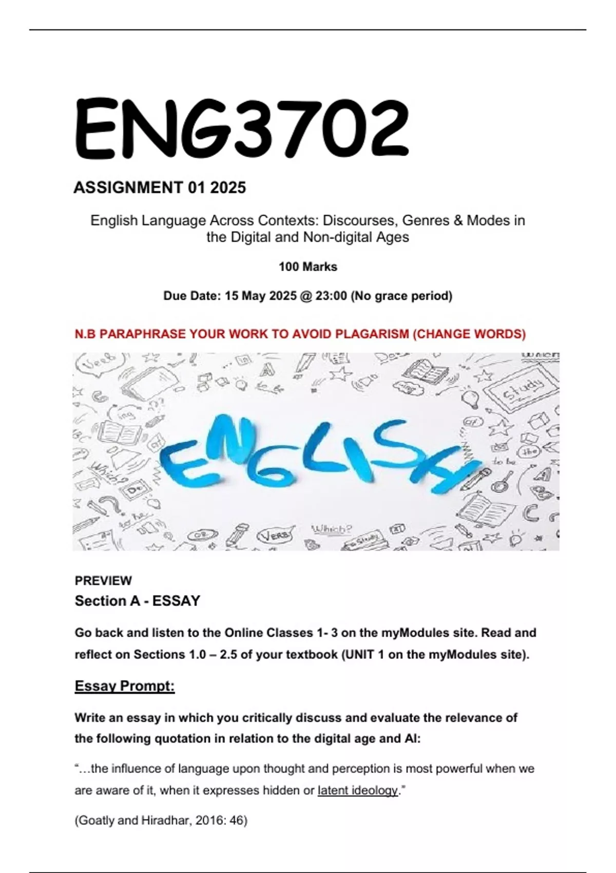 Due Date: 15 May 2025 @ 23:00 (No grace period)
