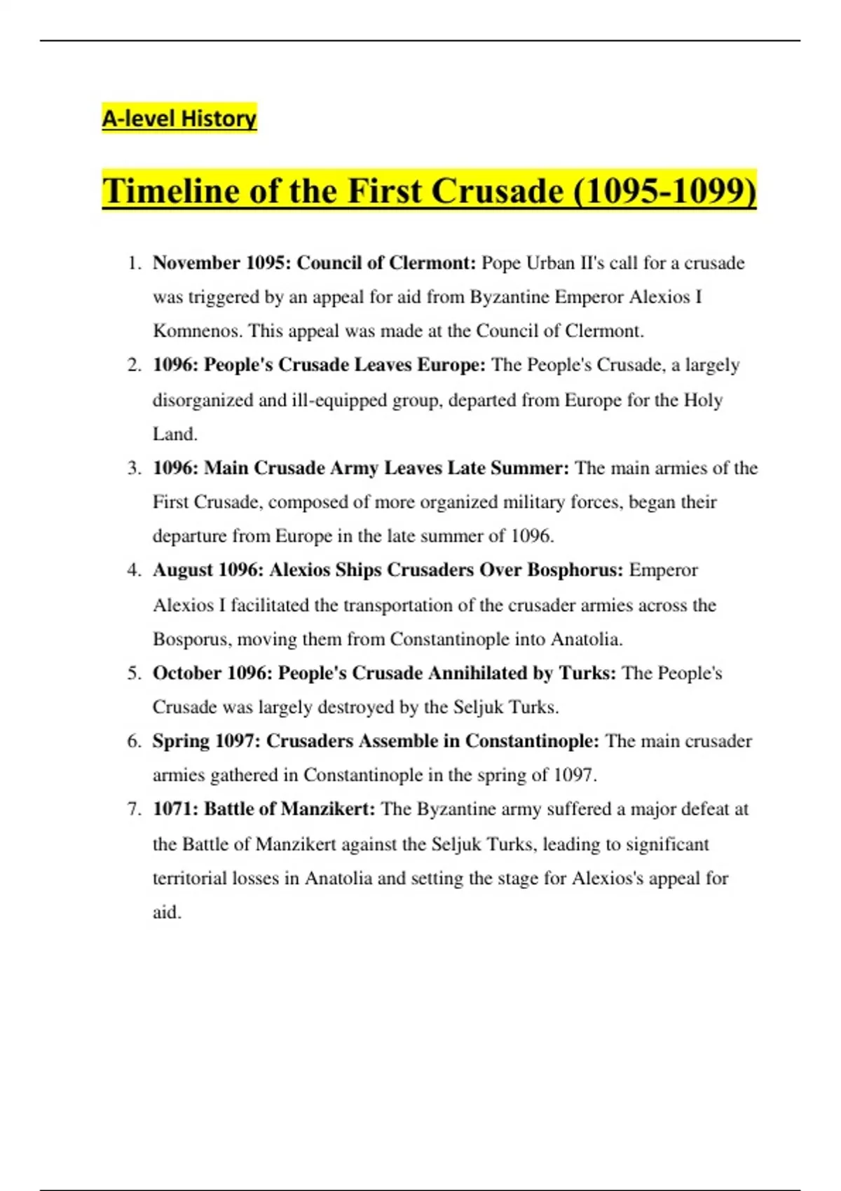 Timeline of the First Crusade (1095-1099)