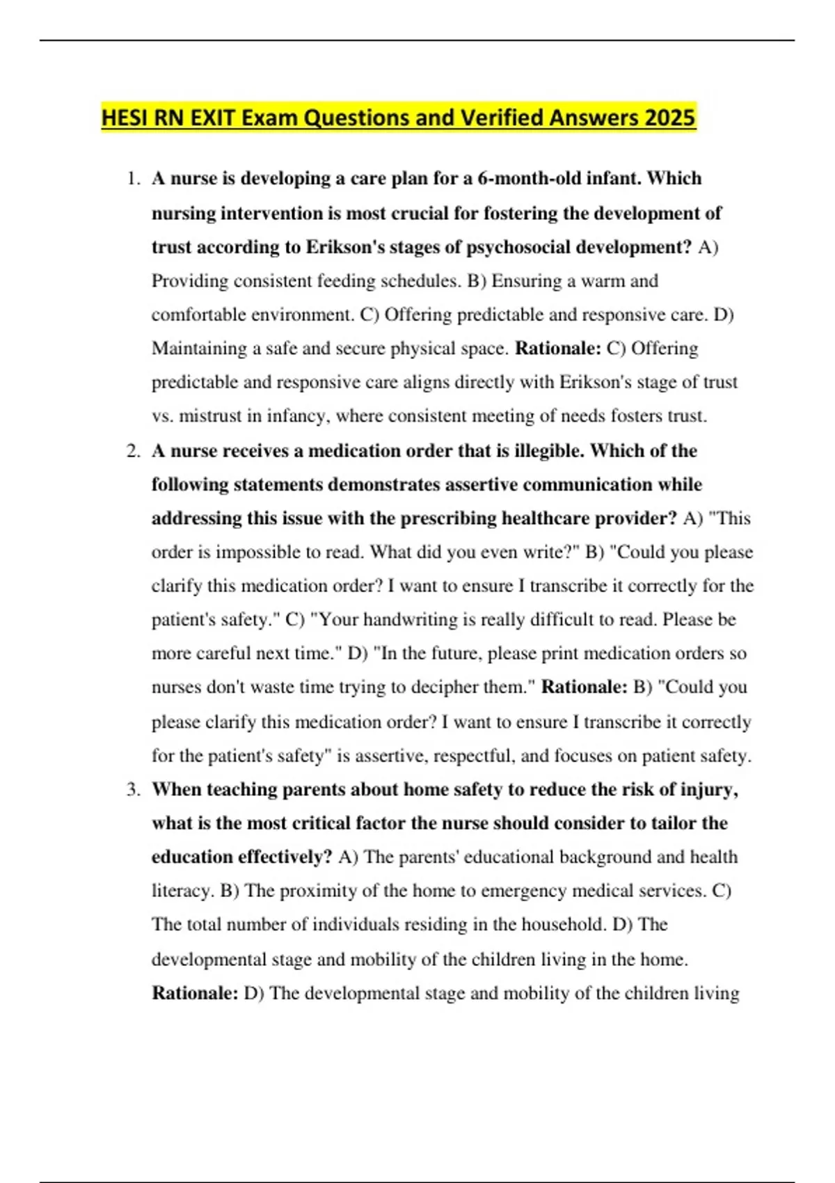 HESI RN EXIT Exam Questions and Verified Answers 2025