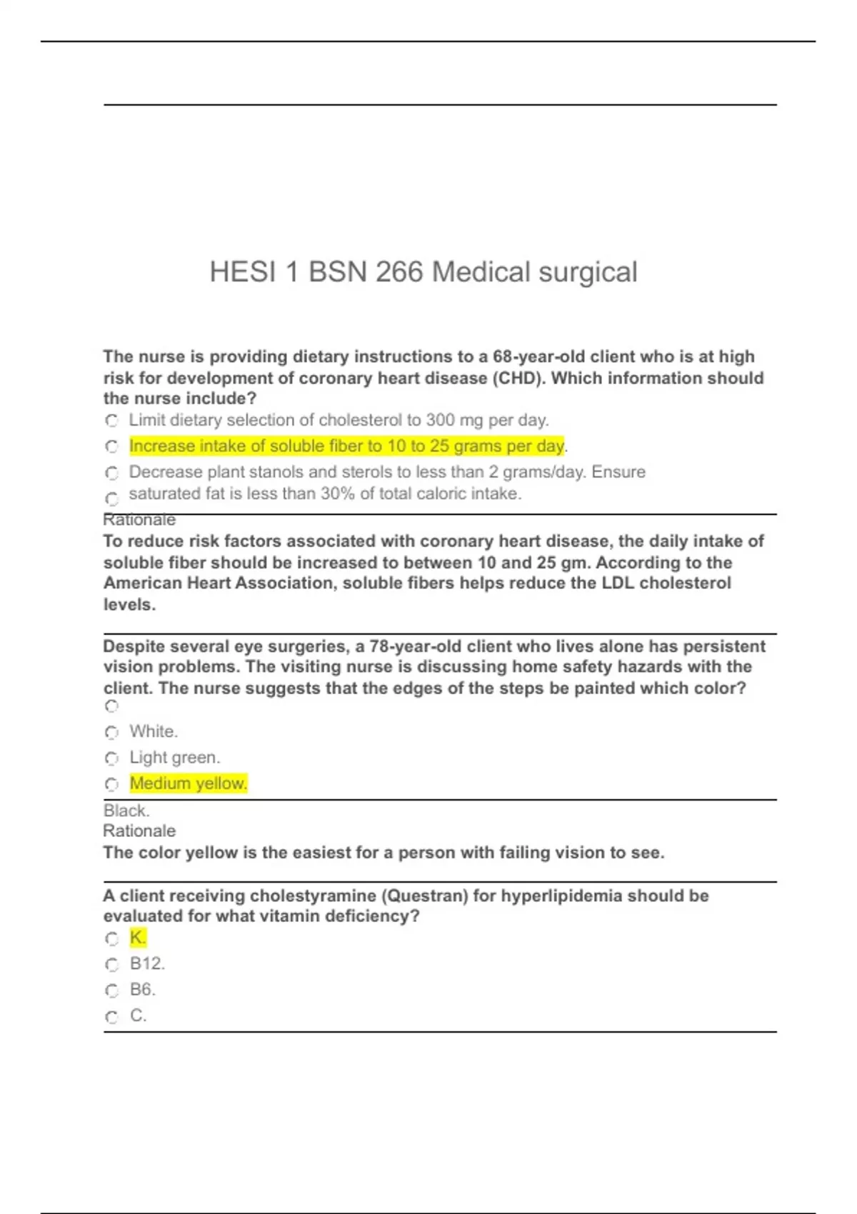 HESI 1 BSN 266 Medical surgical | HESI 2 BSN 266 Medical surgical Combined Questions And Answers Latest Updates