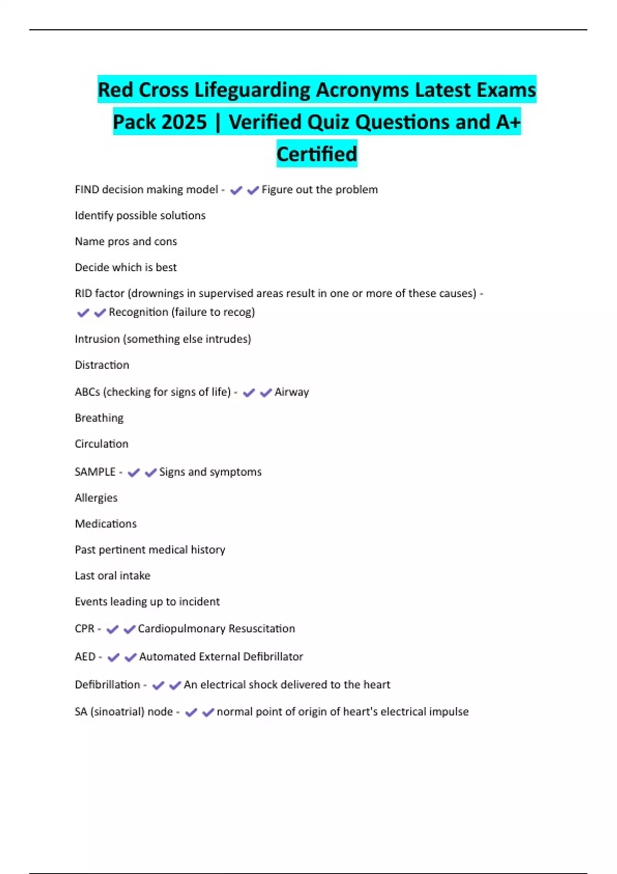 Red Cross Lifeguarding Acronyms Latest Exams Pack 2025 | Verified Quiz Questions and A+ Certified