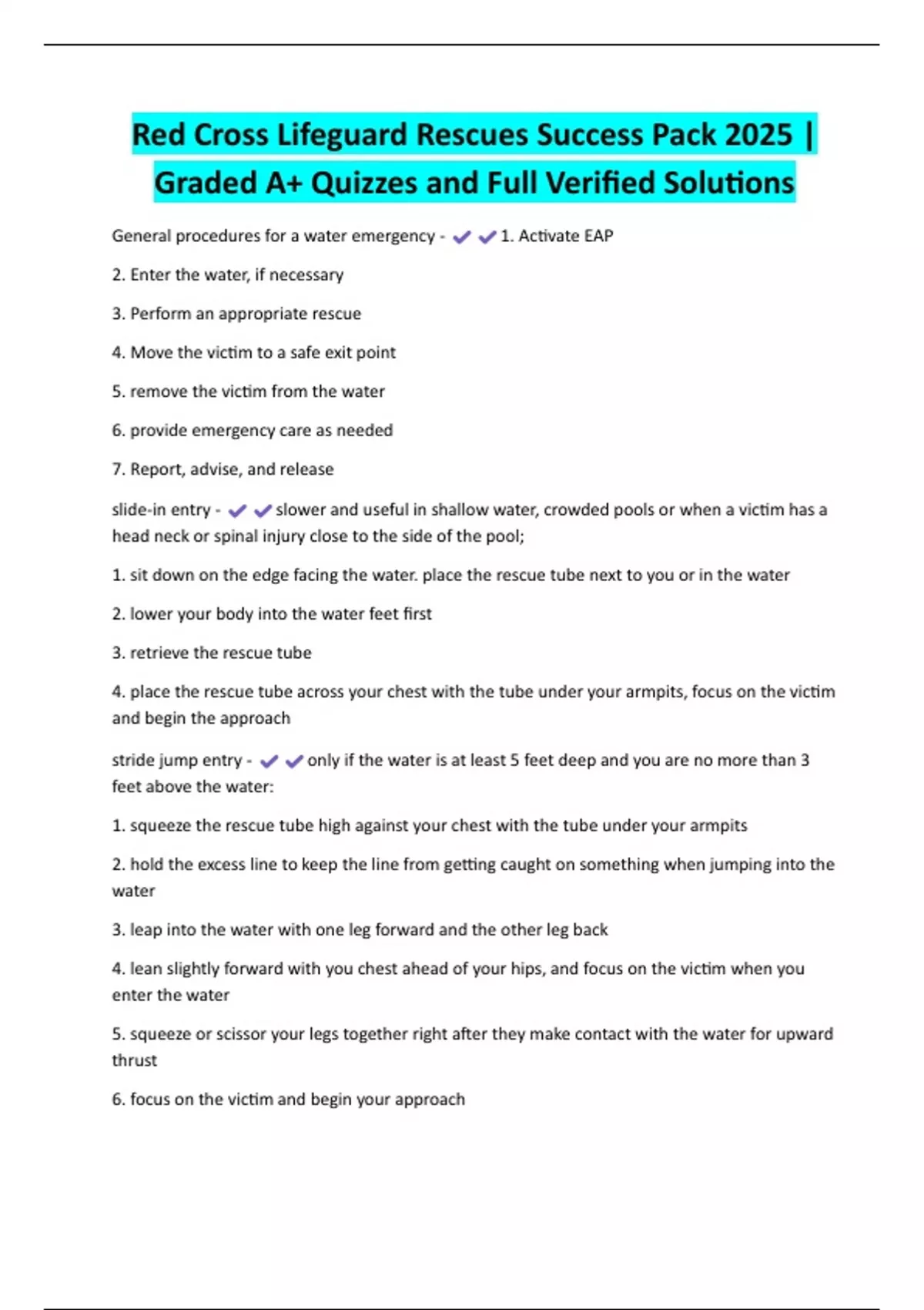 Red Cross Lifeguard Rescues Success Pack 2025 | Graded A+ Quizzes and Full Verified Solutions