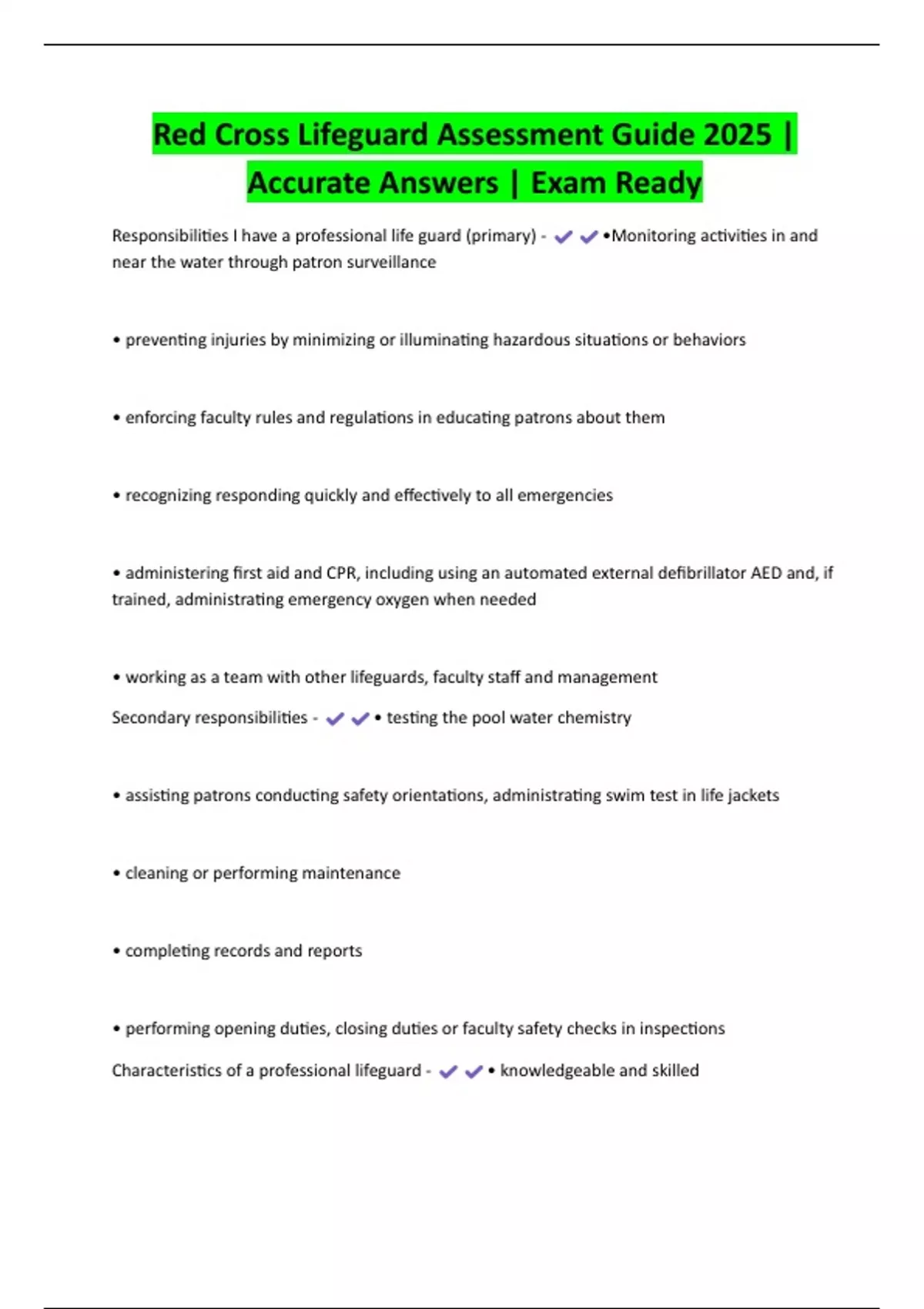Updated and verified Red Cross Lifeguard Assessment 2025 exam guide — perfect for last-minute studying or long-term review.
