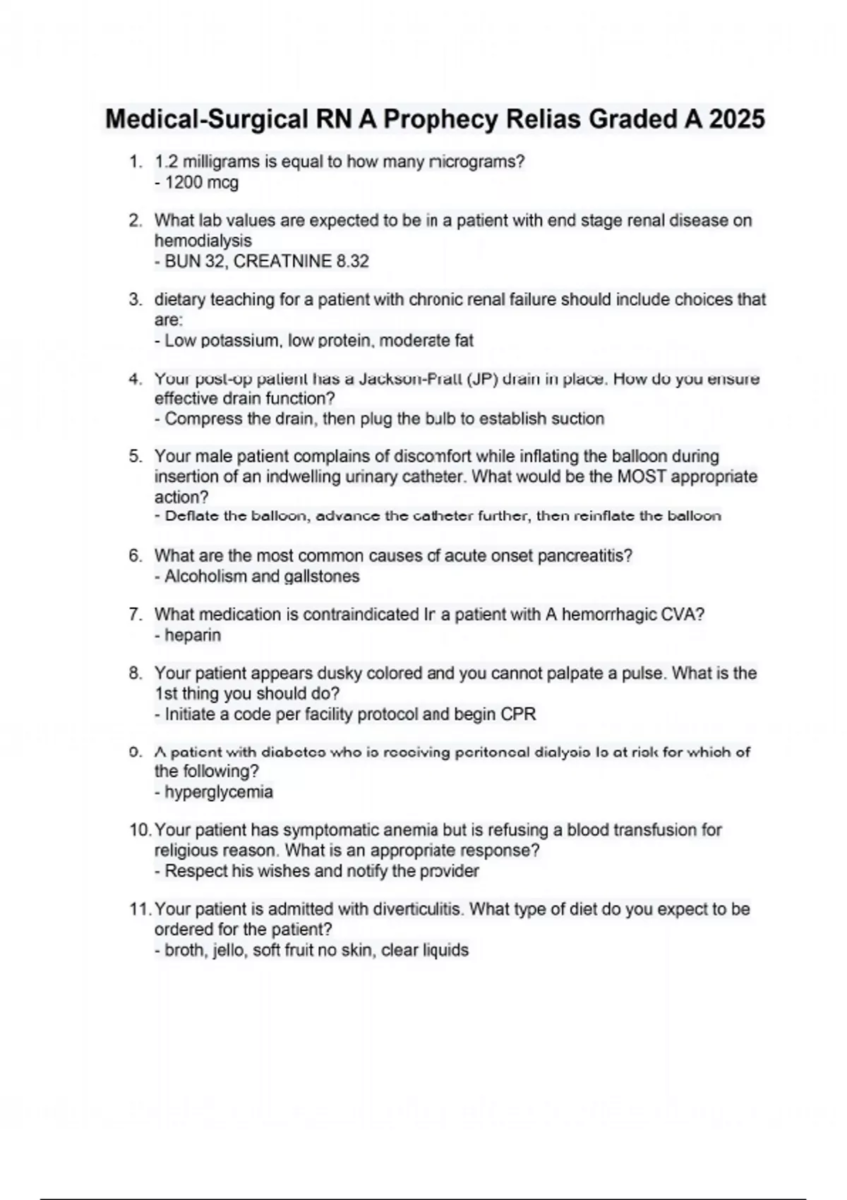 Medical-Surgical RN A Prophecy Relias Graded A 2025