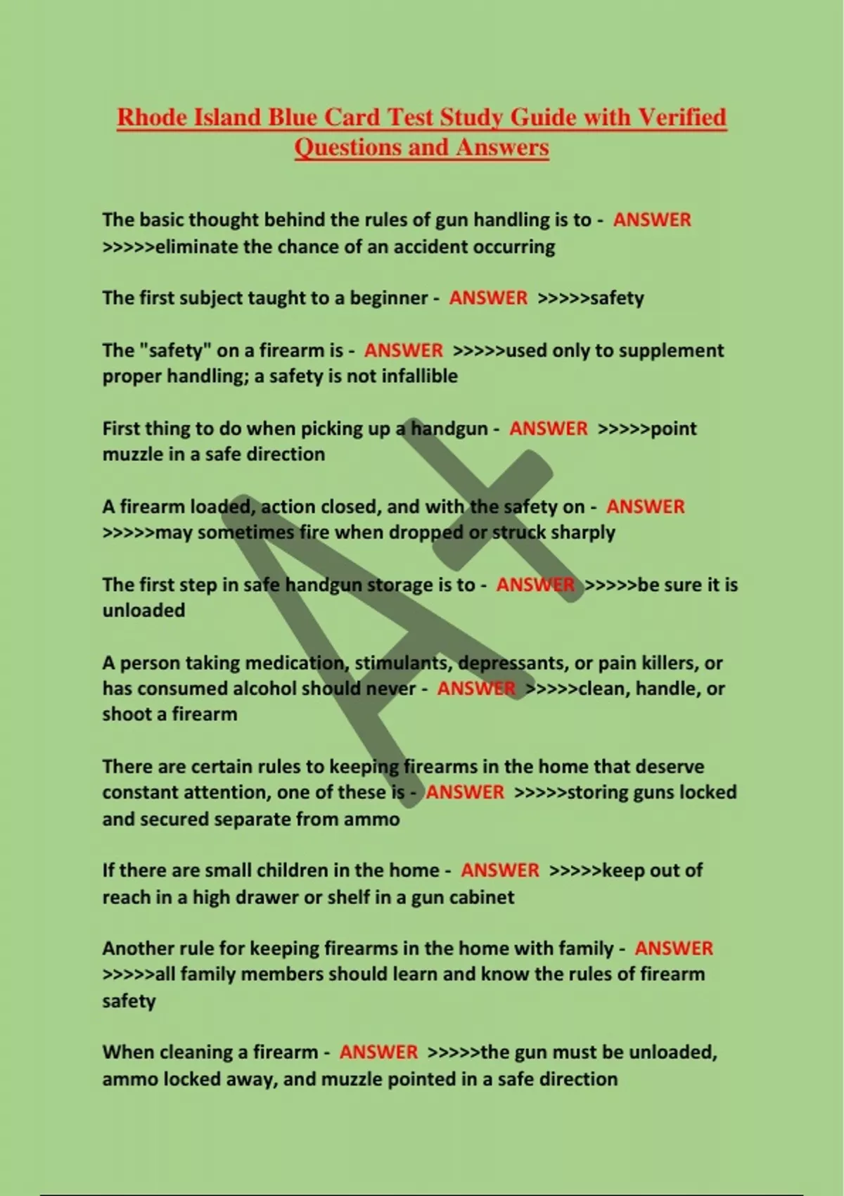 Rhode Island Blue Card Test Study Guide with Verified Questions and AnswersRhode Island Blue Card Test Study Guide with Verified Questions and Answers