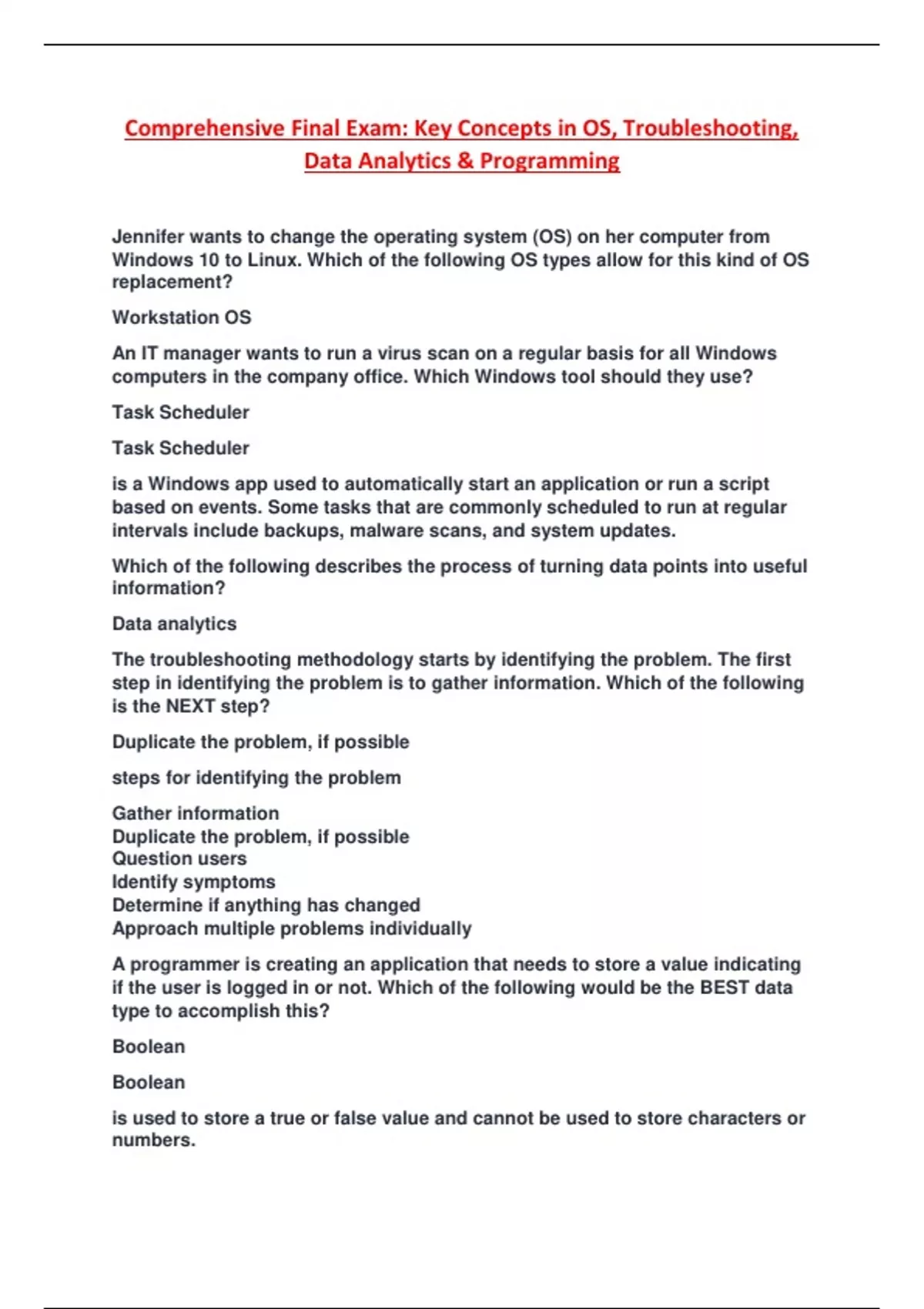 Comprehensive Final Exam: Key Concepts in OS, Troubleshooting,