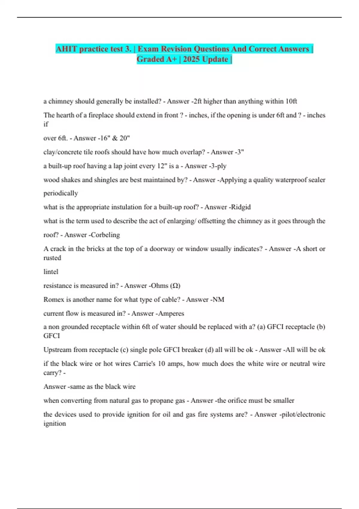 AHIT practice test 3. | Exam Revision Questions And Correct Answers |