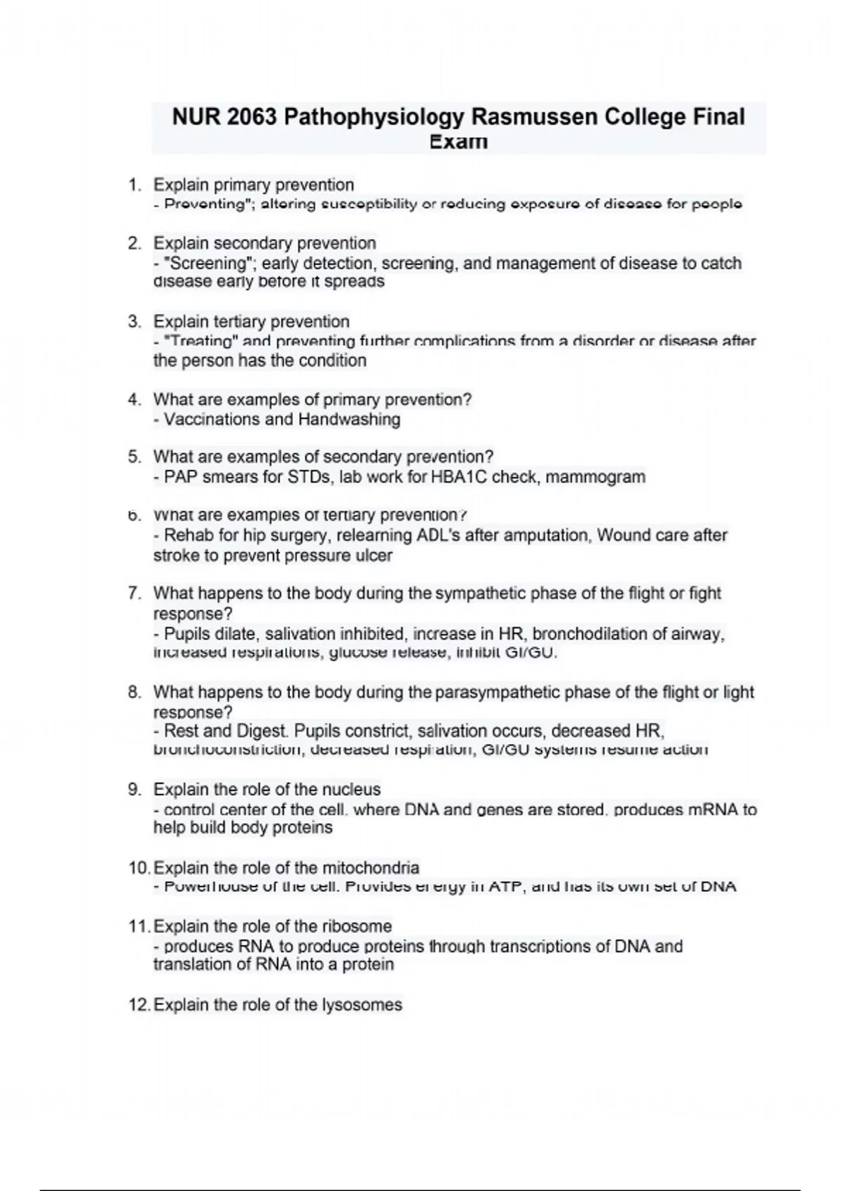 NUR 2063 Pathophysiology Rasmussen College Final Exam