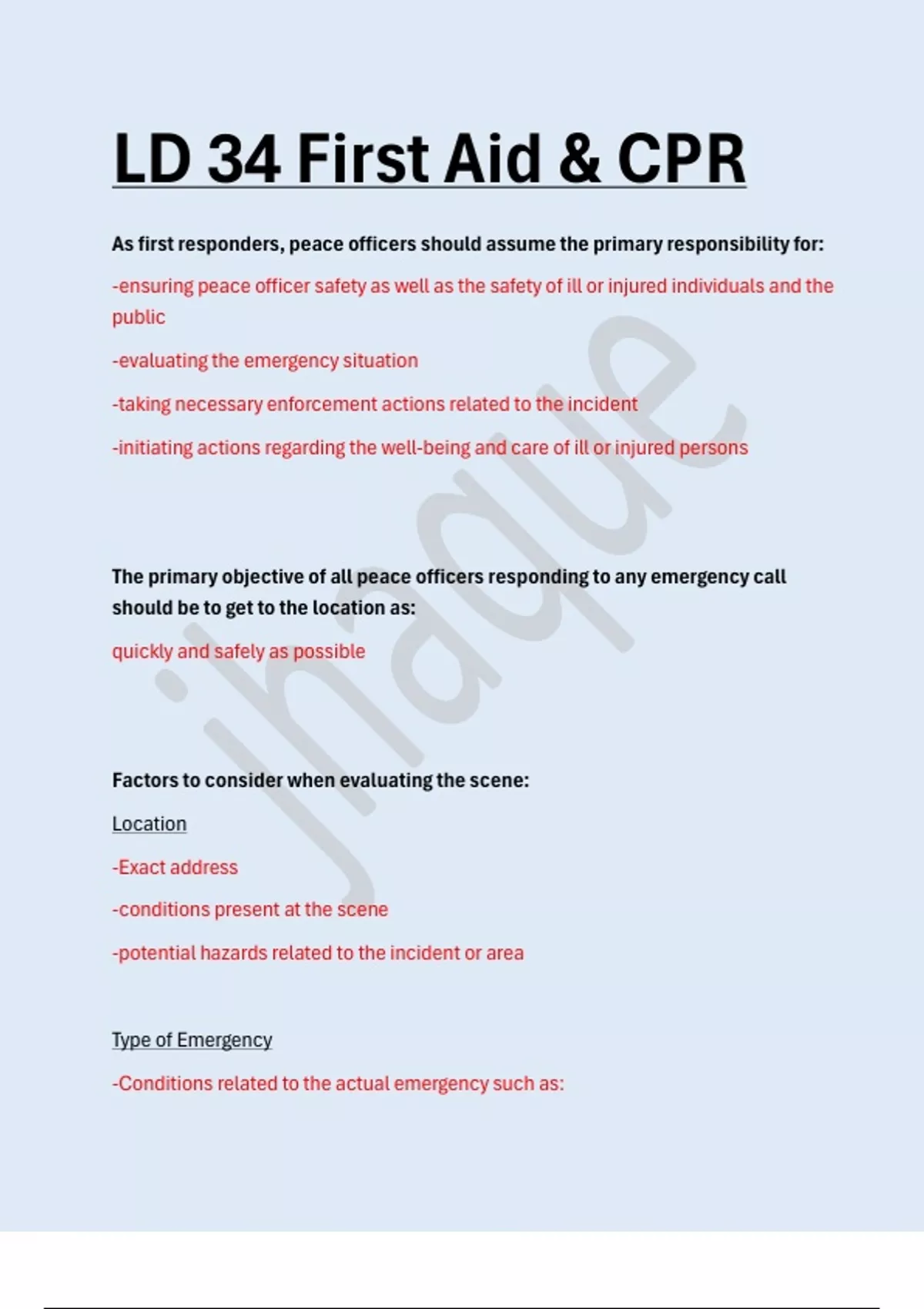 LD 34 First Aid & CPR