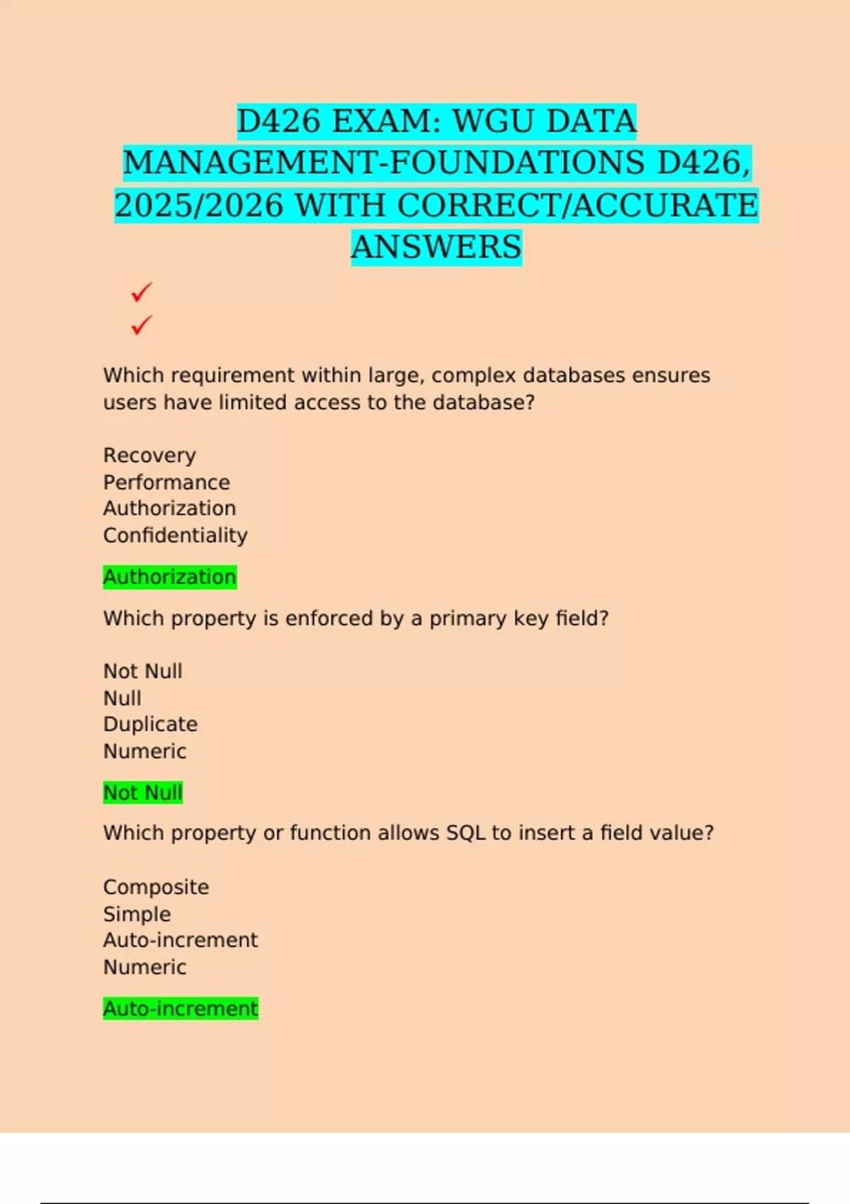 D426 EXAM: WGU DATA MANAGEMENT-FOUNDATIONS D426, 2025/2026 WITH CORRECT/ACCURATE ANSWERS