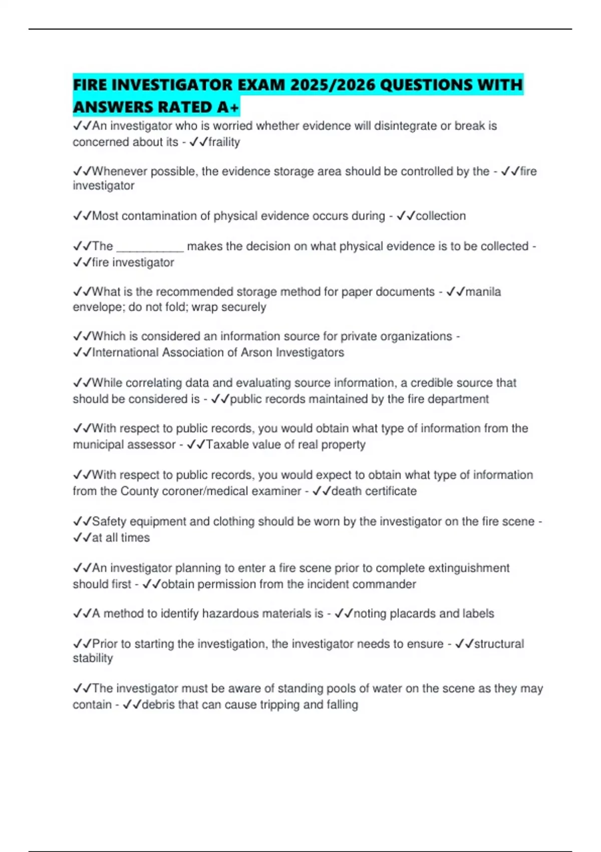 FIRE INVESTIGATOR EXAM 2025/2026 QUESTIONS WITH