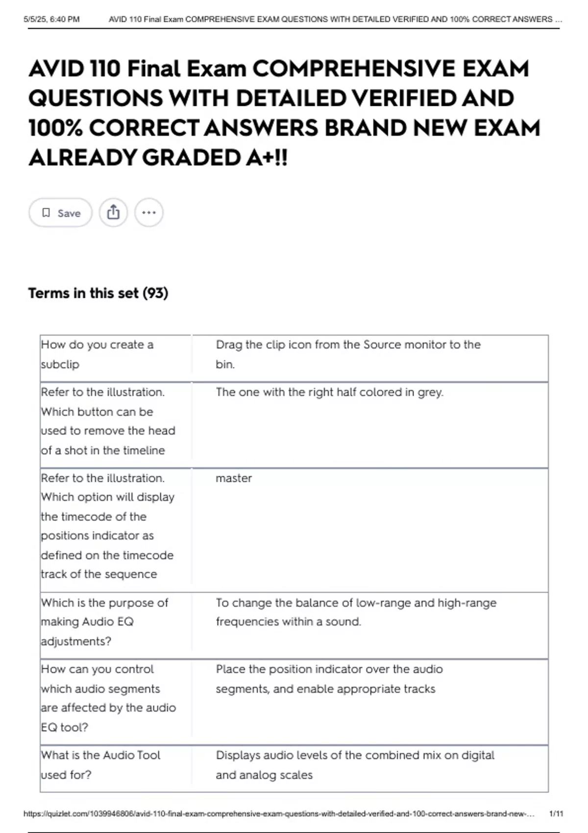 , 5/5/25, 6:40 PM AVID 110 Final Exam COMPREHENSIVE EXAM QUESTIONS WITH DETAILED VERIFIED AND 100% CORRECT ANSWERS …