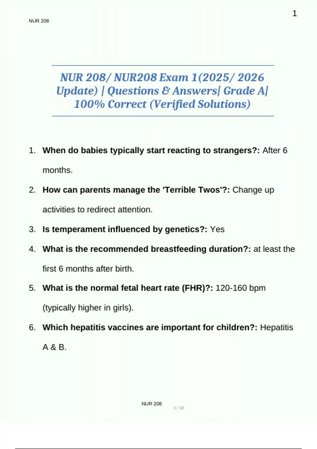 NUR 208/ NUR208 Exam 1(2025/ 2026