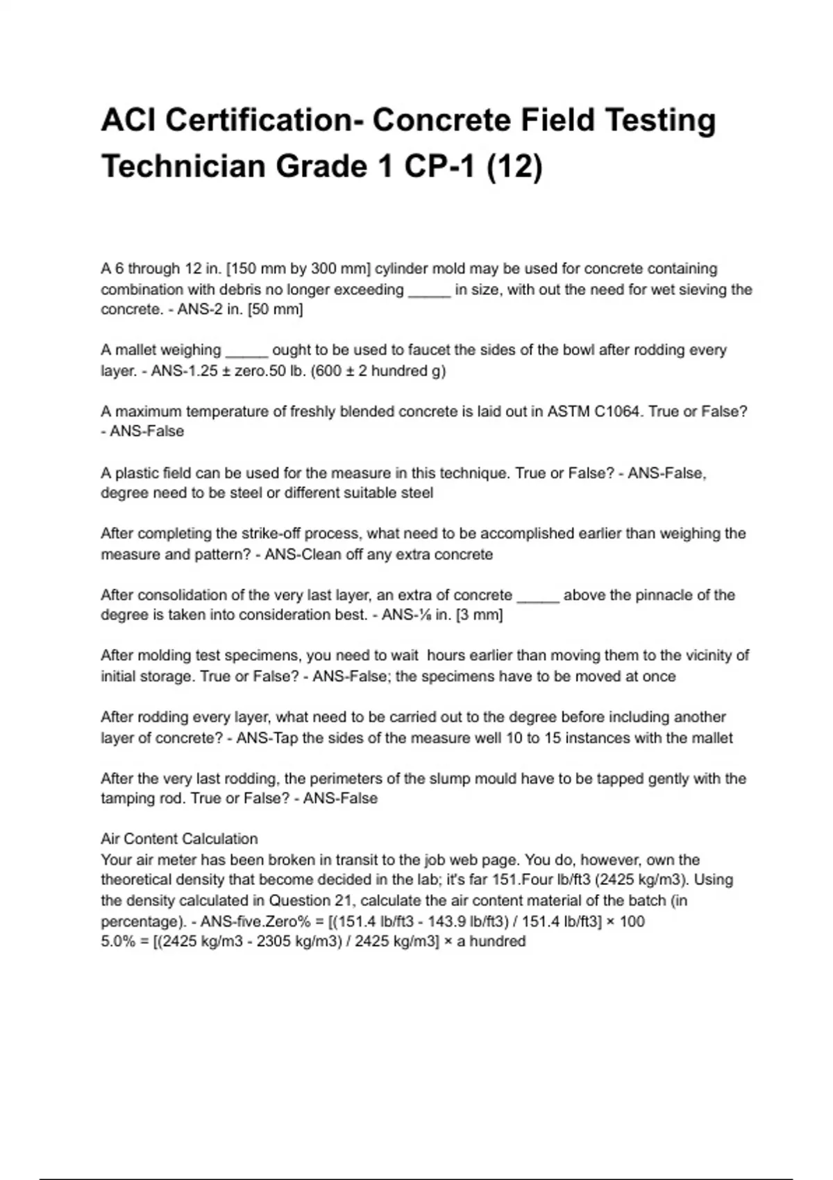 percentage). - ANS-five.Zero% = [(151.4 lb/ft3 - 143.9 lb/ft3) / 151.4 lb/ft3] × 100
