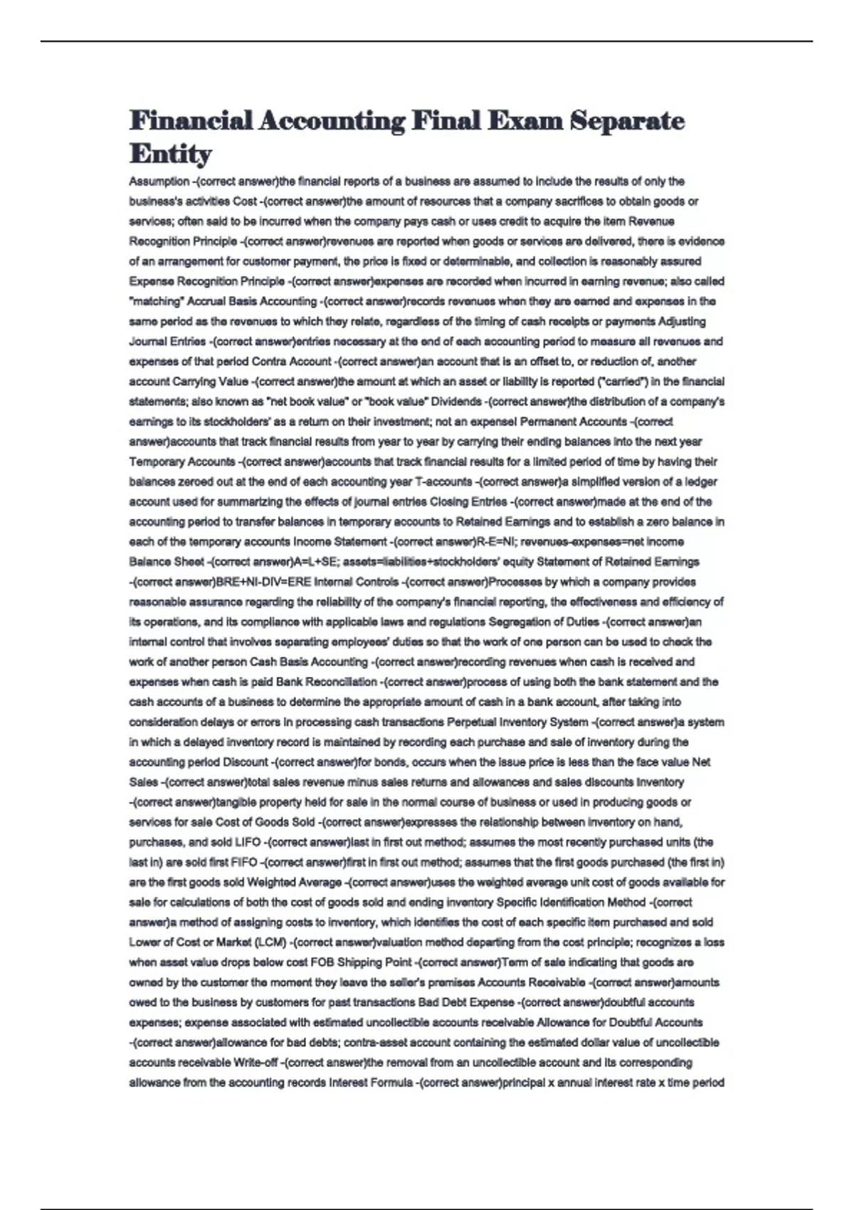 Assumption -(correct answer)the financial reports of a business are assumed to include the results of only the