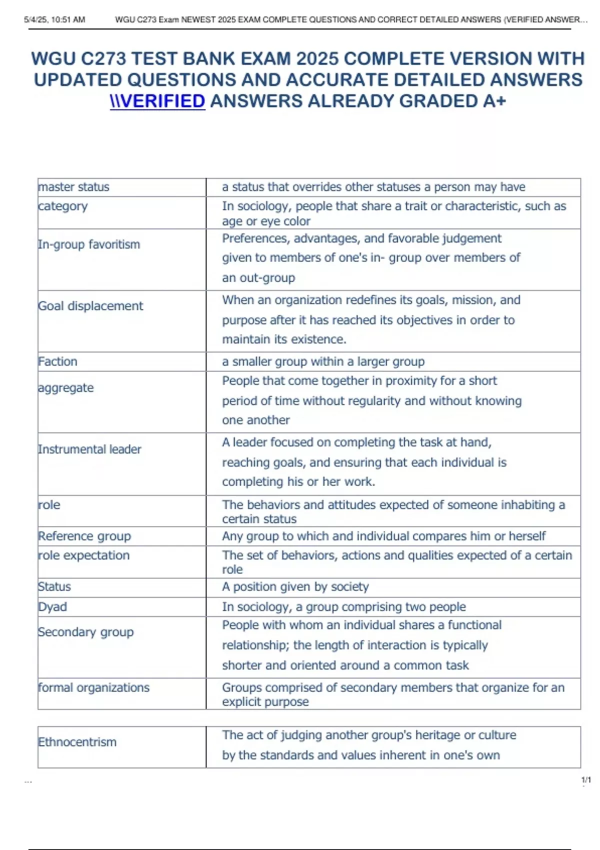 , 5/4/25, 10:51 AM WGU C273 Exam NEWEST 2025 EXAM COMPLETE QUESTIONS AND CORRECT DETAILED ANSWERS (VERIFIED ANSWER…