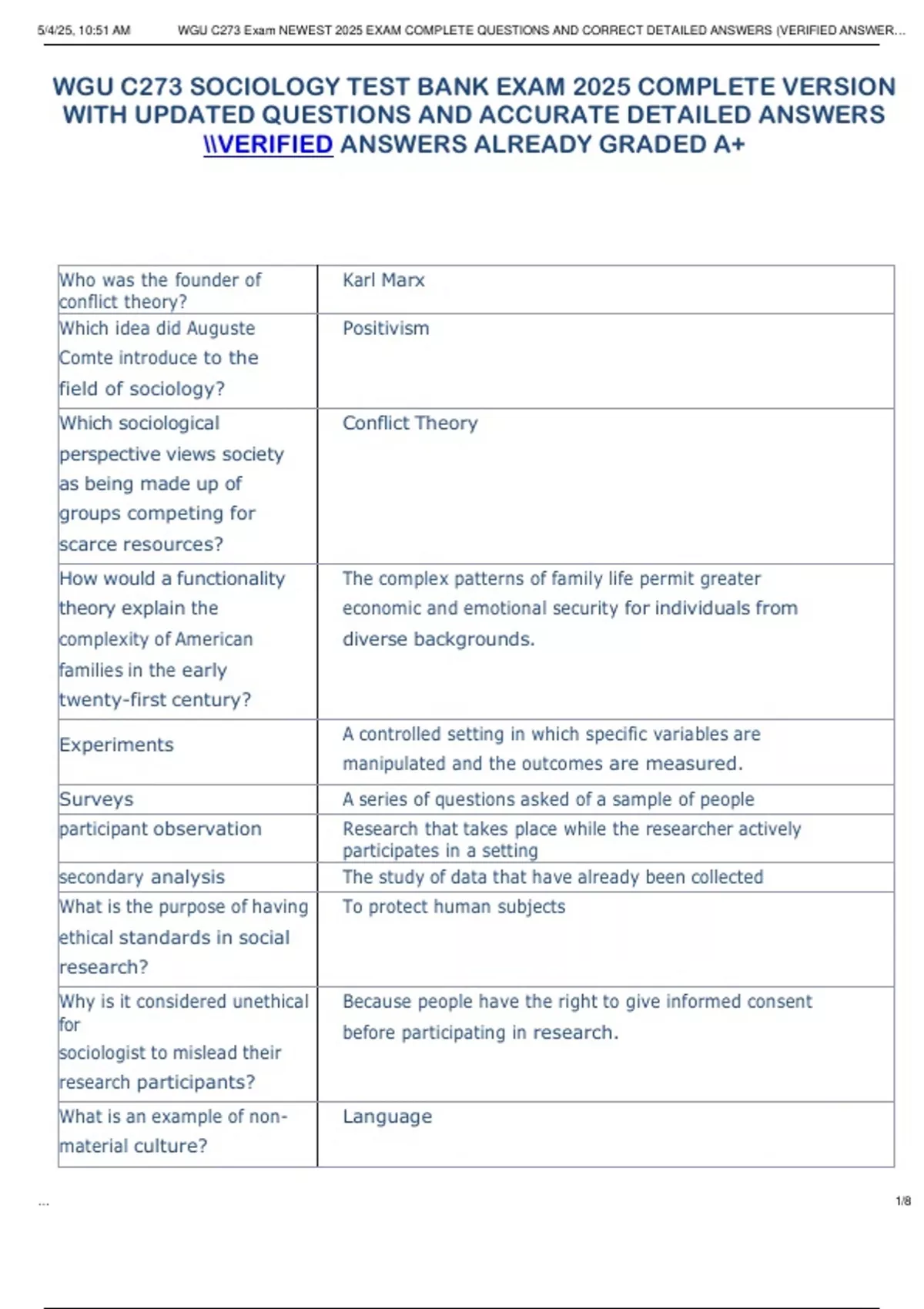 , 5/4/25, 2:35 PM Sociology WGU C273 Exam Questions With All Correct Answers 2025 Marking Scheme