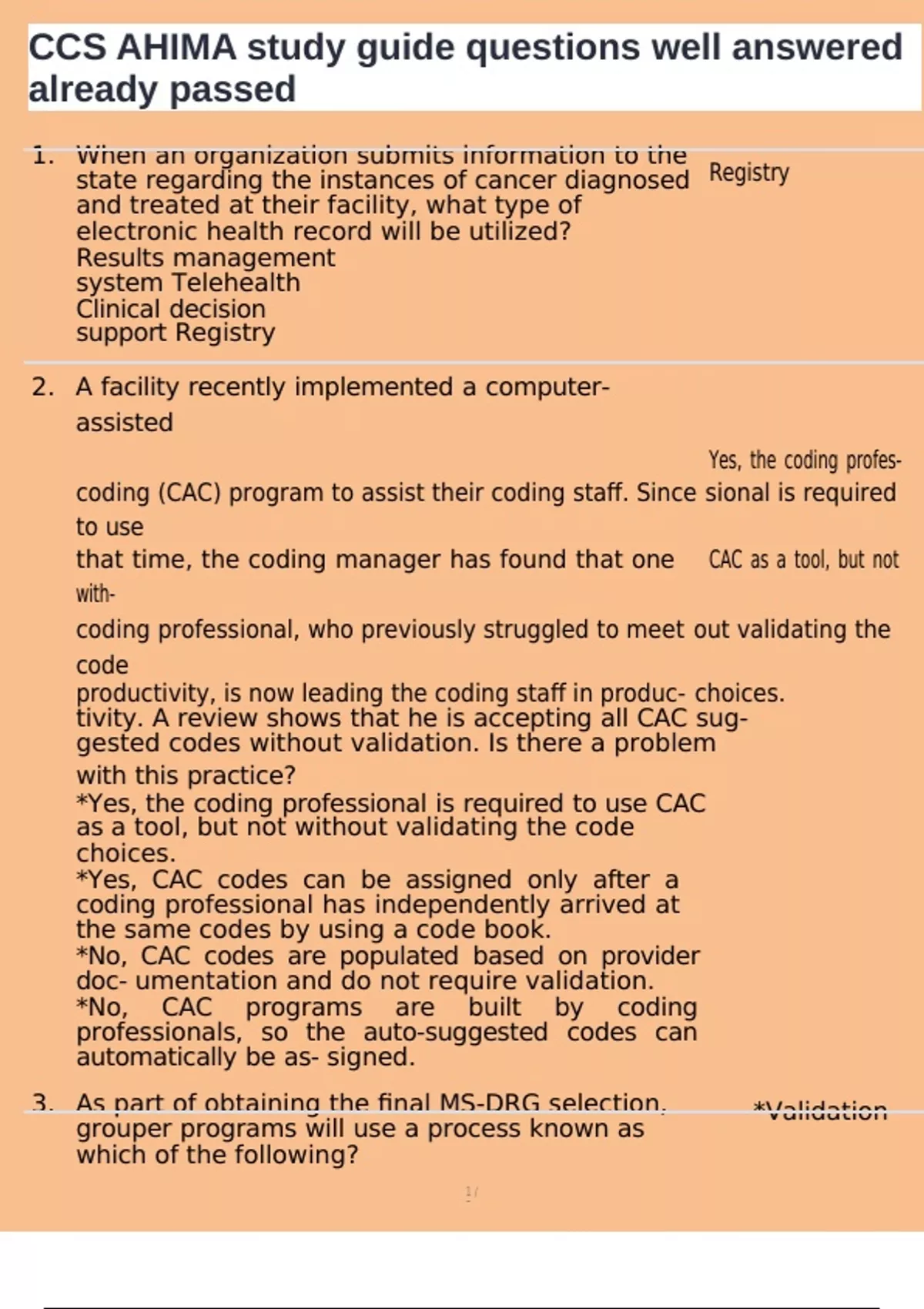 , CCS AHIMA study guide questions well answered