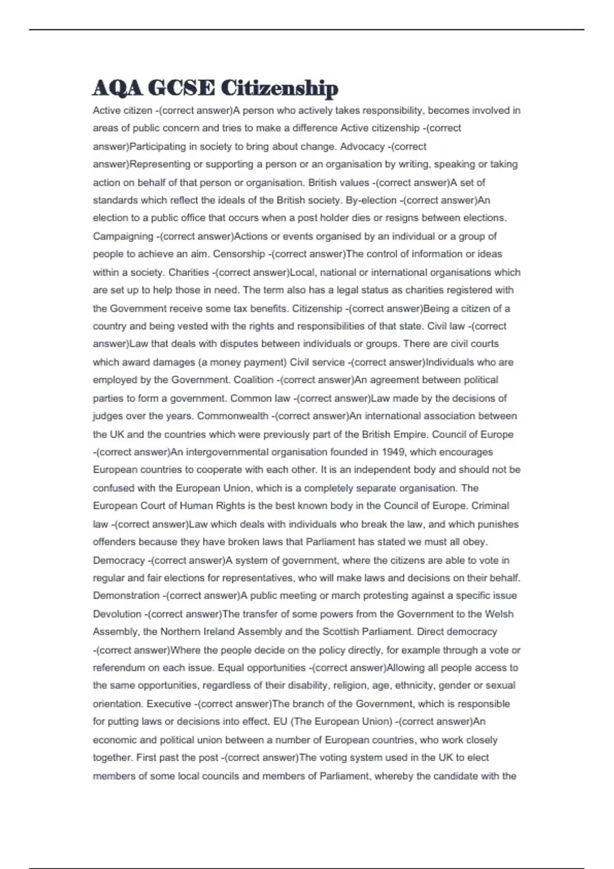 areas of public concern and tries to make a difference Active citizenship -(correct