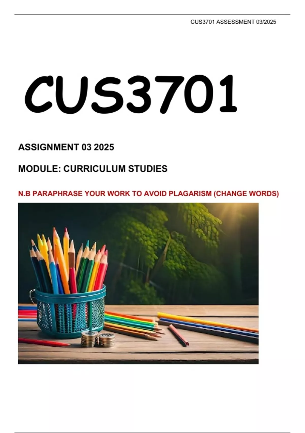 , CUS3701 ASSESSMENT 03/2025