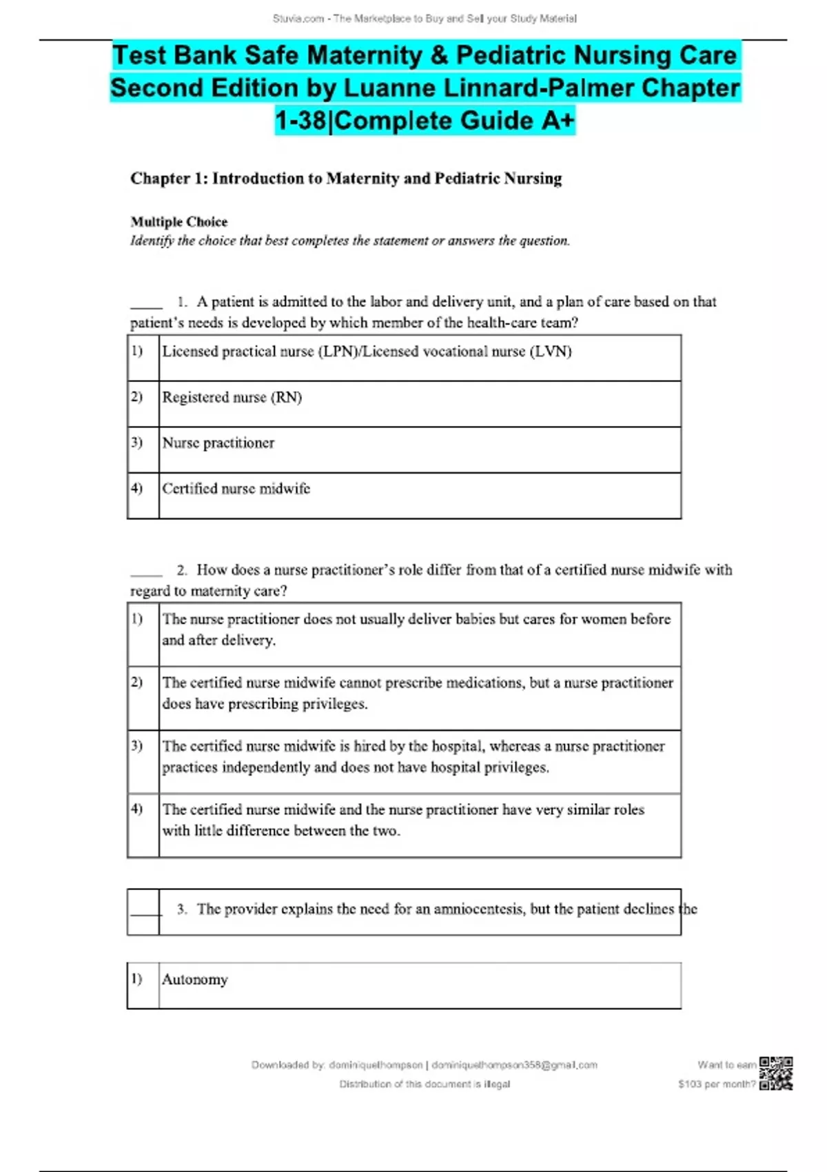 Test Bank Safe Maternity & Pediatric Nursing Care Second Edition by Luanne Linnard-Palmer Chapter 1-38|Complete Guide A+