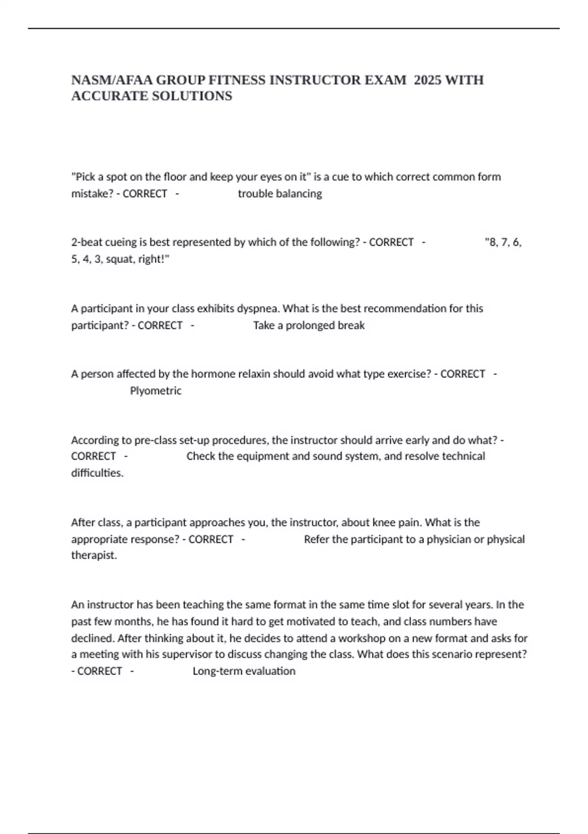 NASM/AFAA GROUP FITNESS INSTRUCTOR EXAM 2025 WITH ACCURATE SOLUTIONS