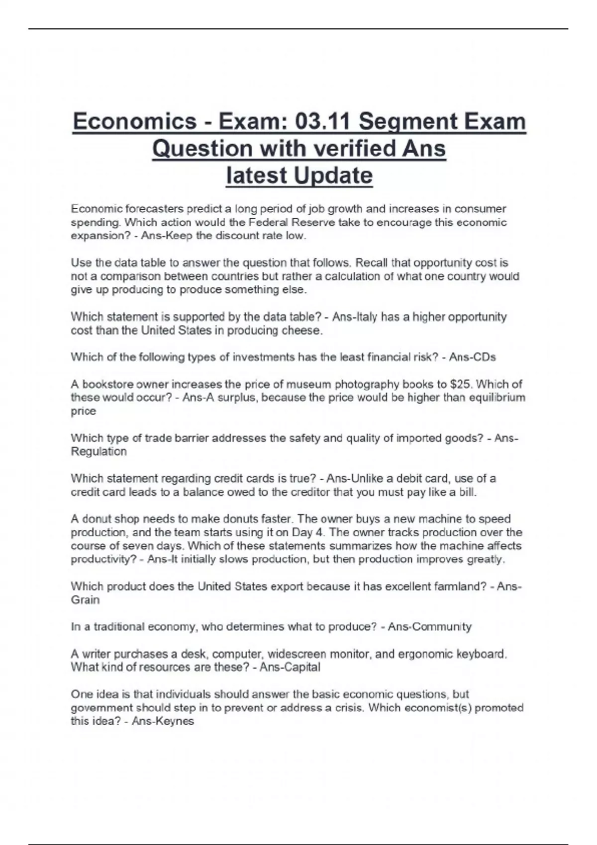 Economics - Exam: 03.11 Segment Exam Question with verified Ans latest Update