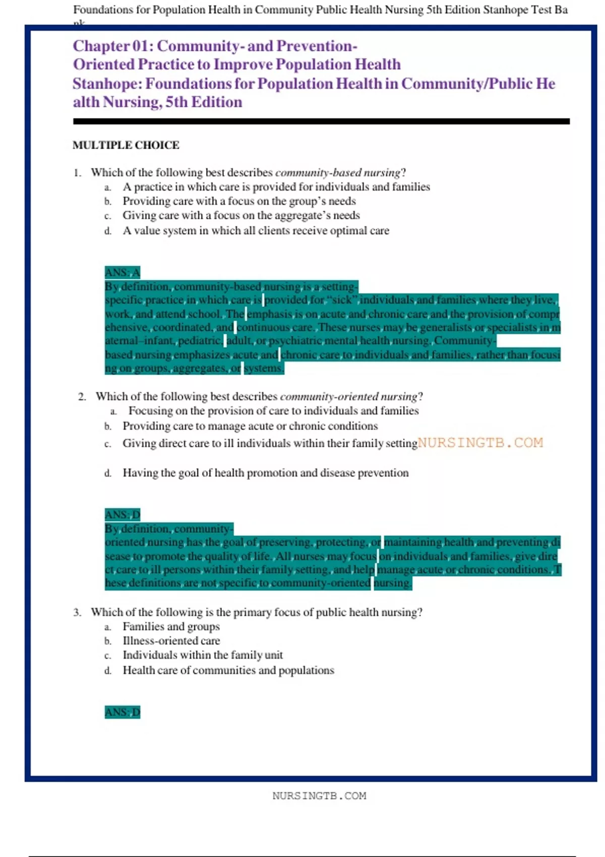 , FoundationspforpPopulationpHealthpinpCommunitypPublicpHealthpNursingp5thpEditionpStanhopepTestpBa