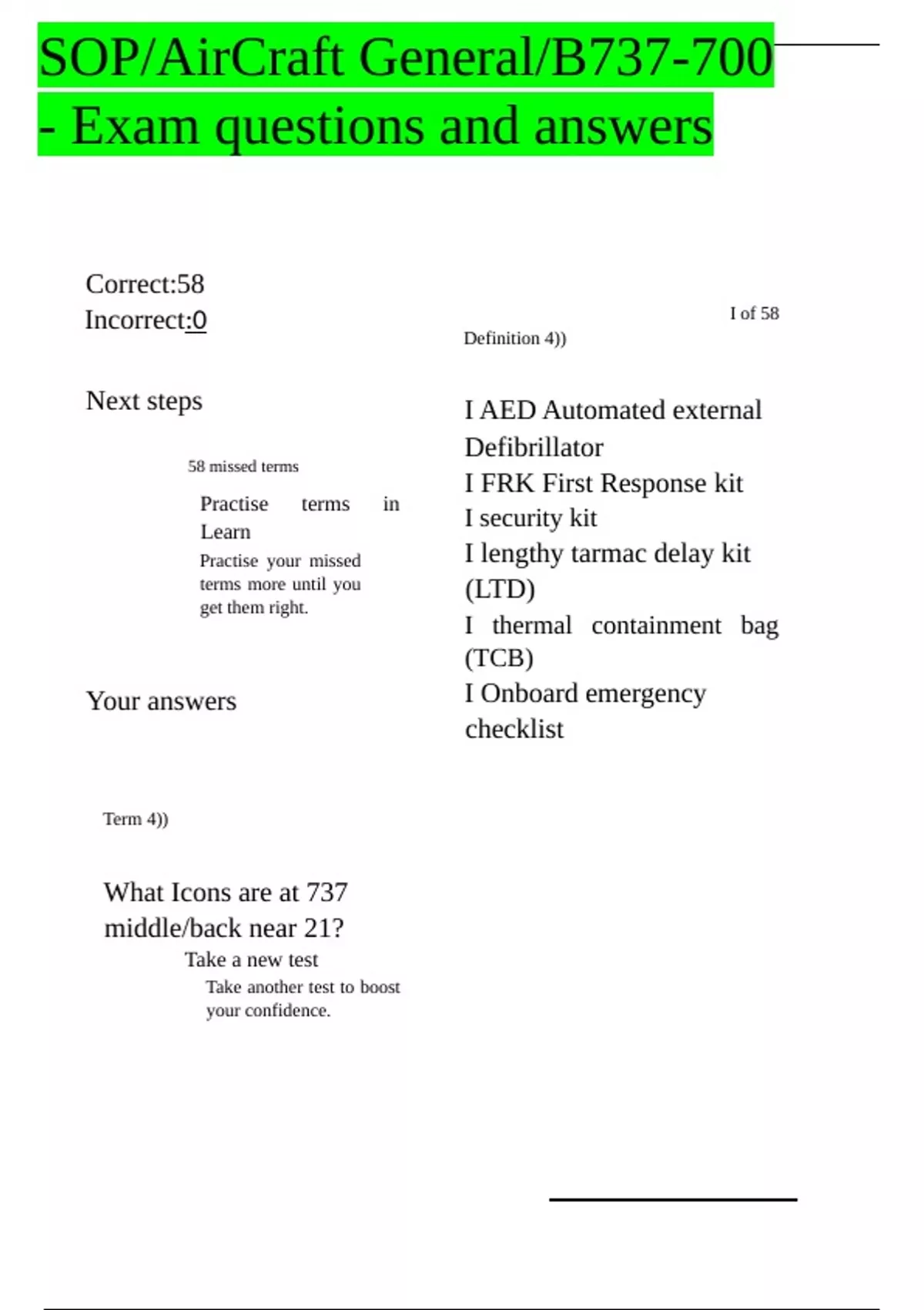 Your answers I Onboard emergency