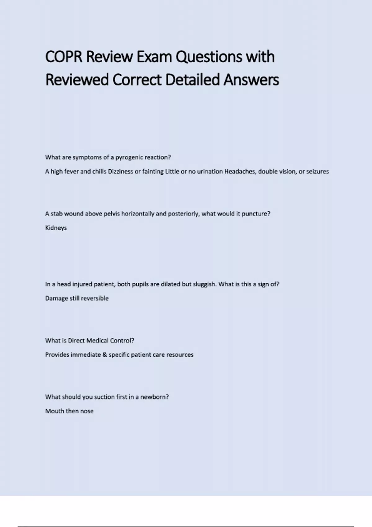 COPR Review Exam Questions with Reviewed Correct Detailed Answers