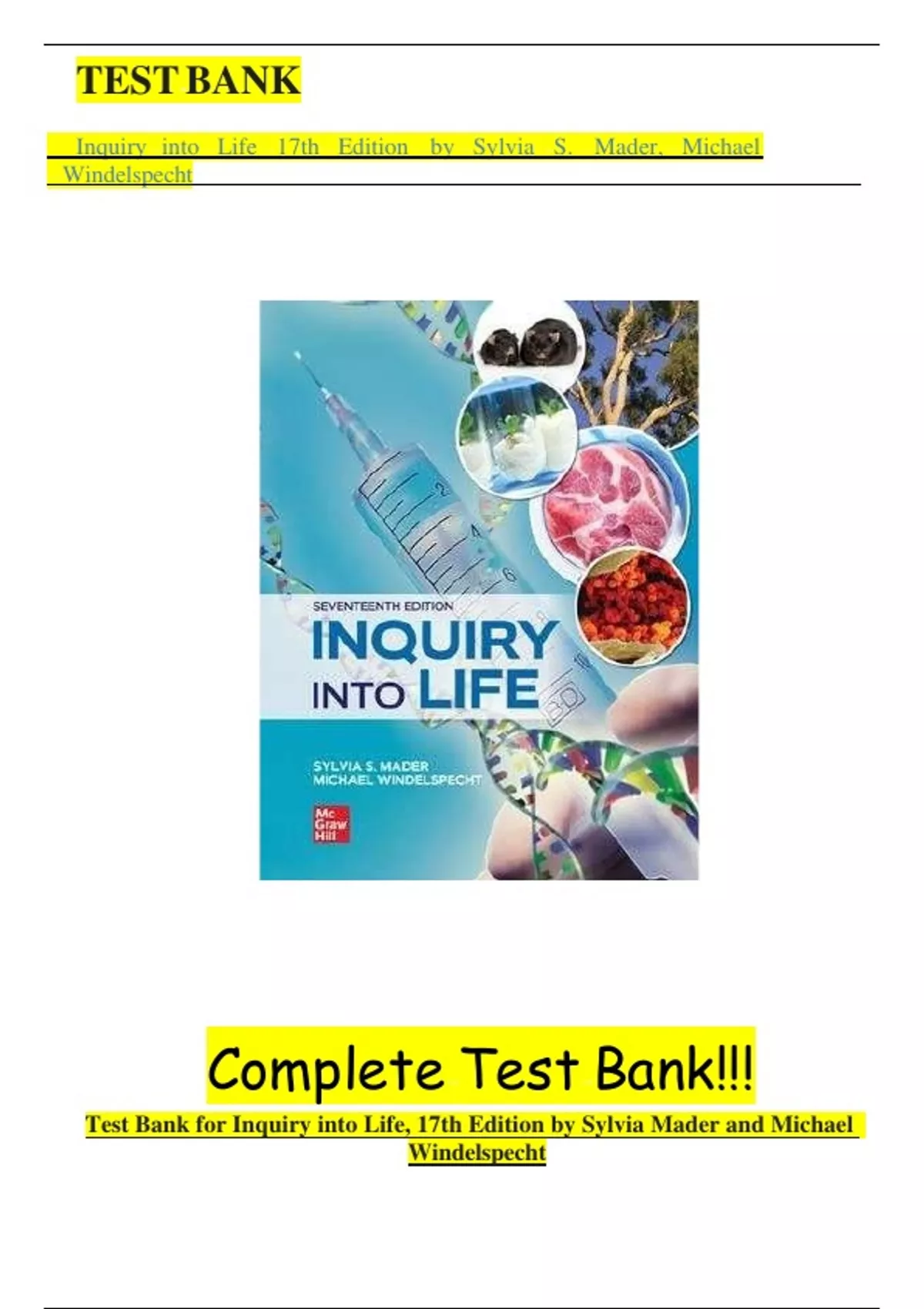 Test Bank - for Inquiry into Life 17th Edition by Sylvia S. Mader, Michael Windelspecht,ISBN:9780697360779 All Chapters Covered | Complete Guide A+|Latest edition 2025.