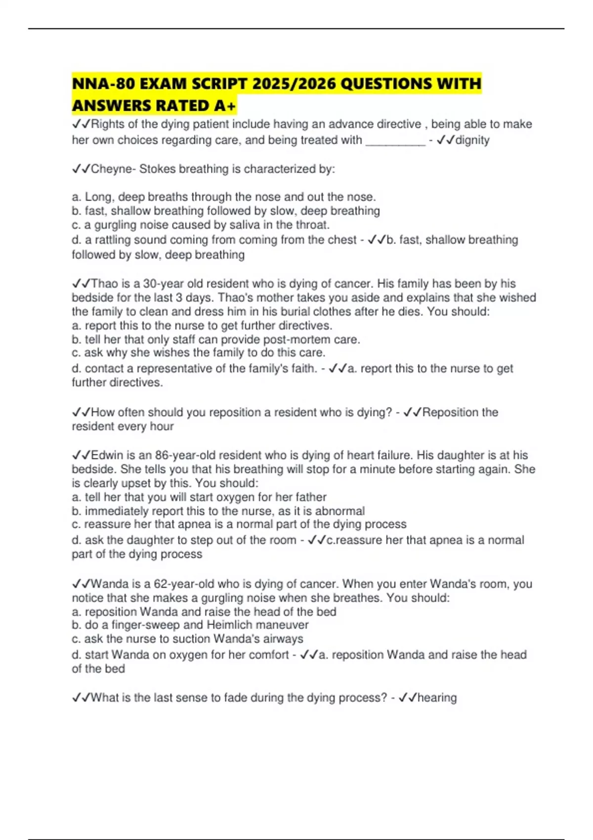 ✔✔Wanda is a 62-year-old who is dying of cancer. When you enter Wanda's room, you