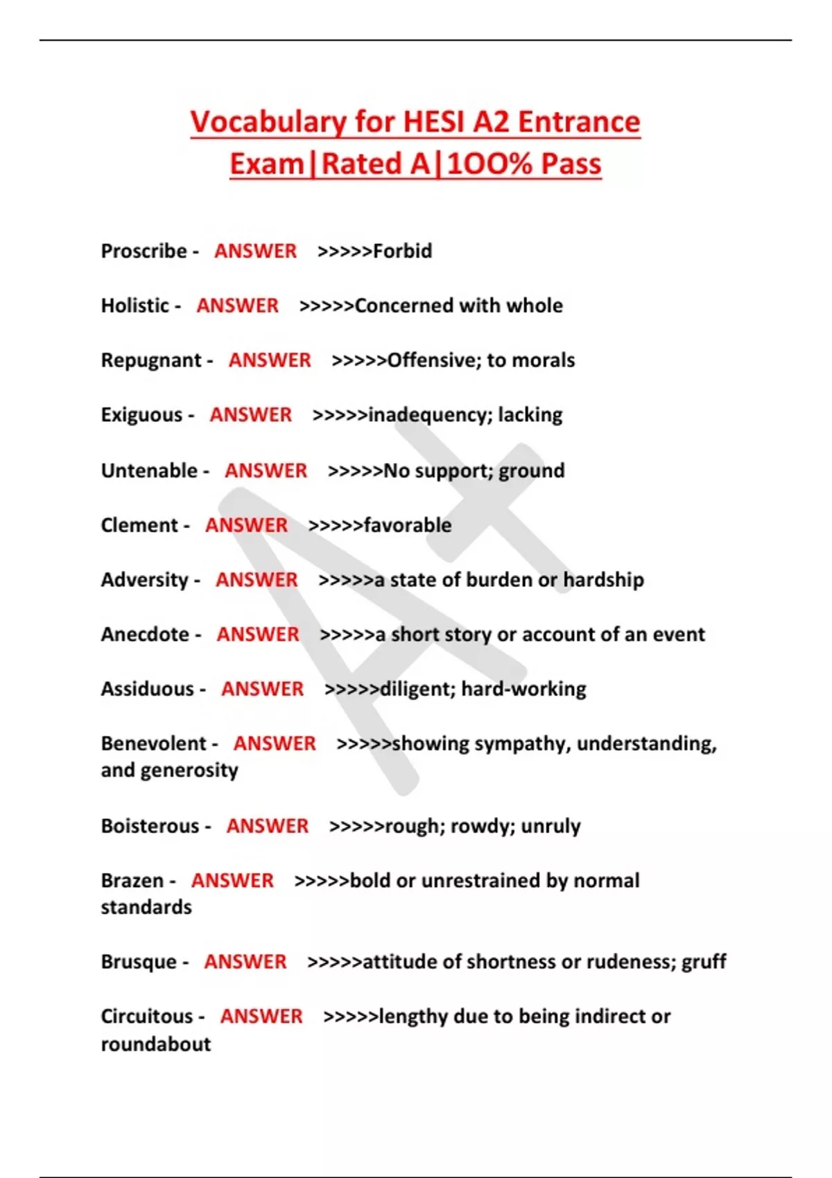 Vocabulary for HESI A2 Entrance
