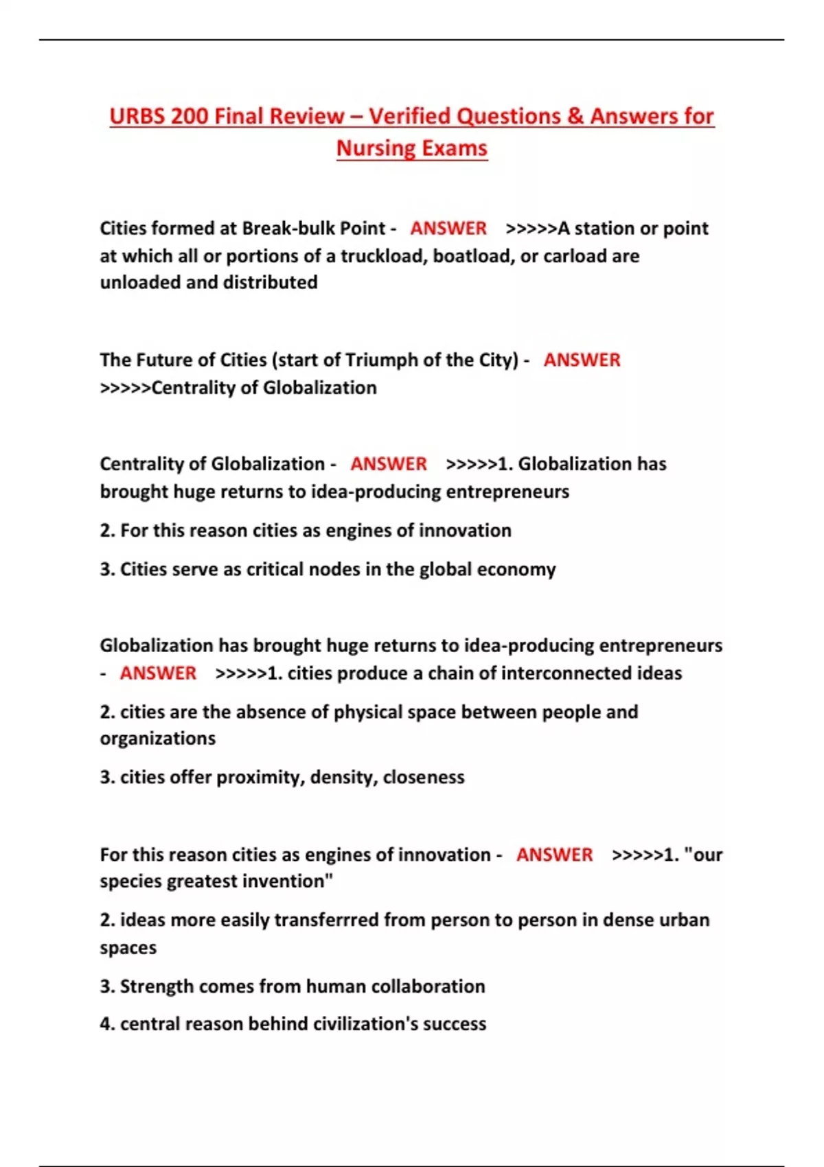 URBS 200 Final Review – Verified Questions & Answers for Nursing Exams