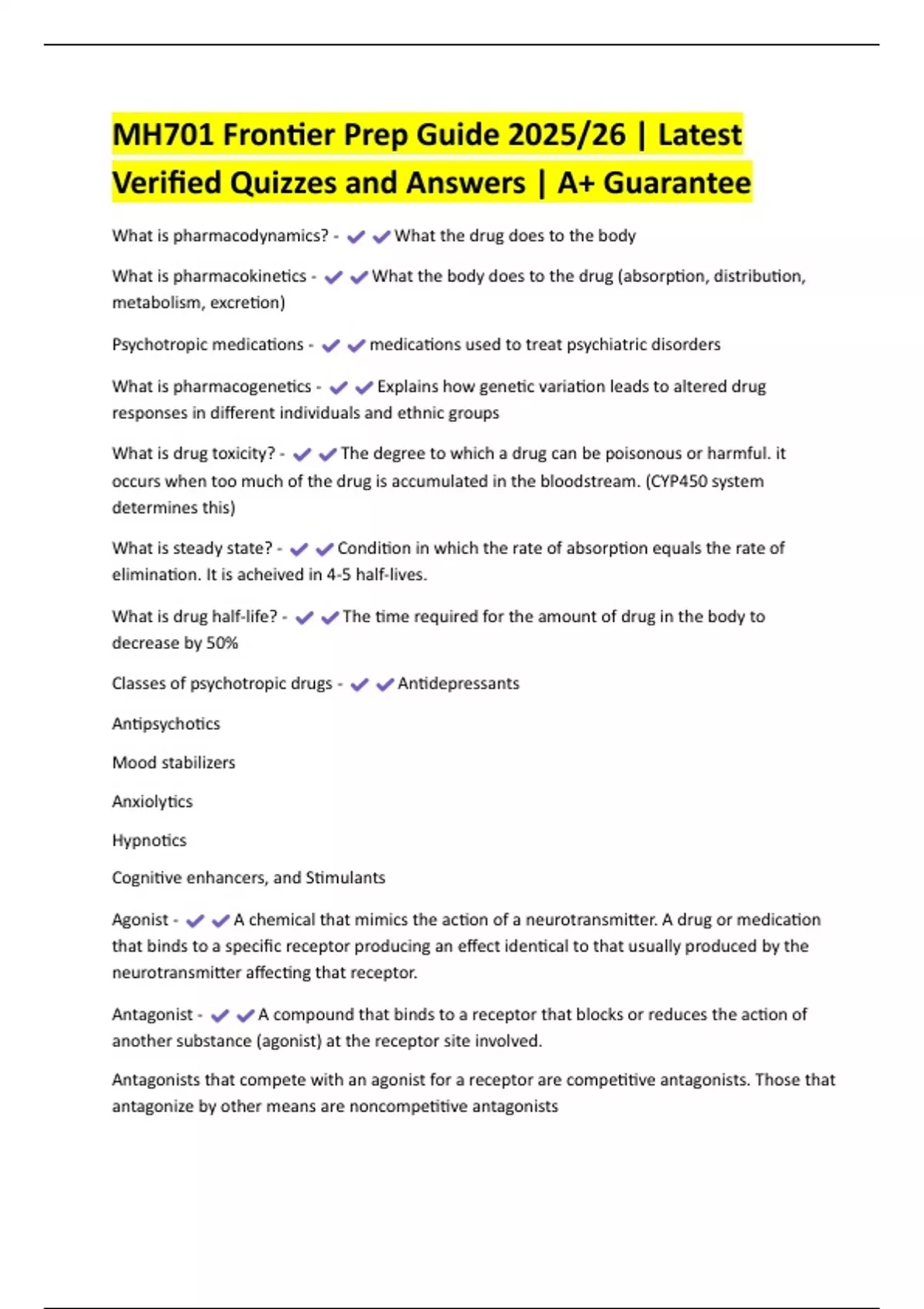 MH701 Frontier Prep Guide 2025/26 | Latest Verified Quizzes and Answers | A+ Guarantee