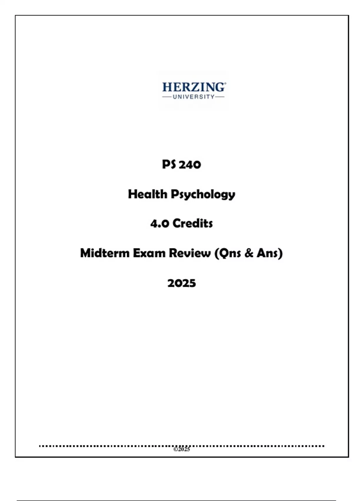 PS 240 Health Psychology Midterm Exam Review 2025 (Qns & Ans).PS 240 Health Psychology Midterm Exam Review 2025 (Qns & Ans).PS 240 Health Psychology Midterm Exam Review 2025 (Qns & Ans).