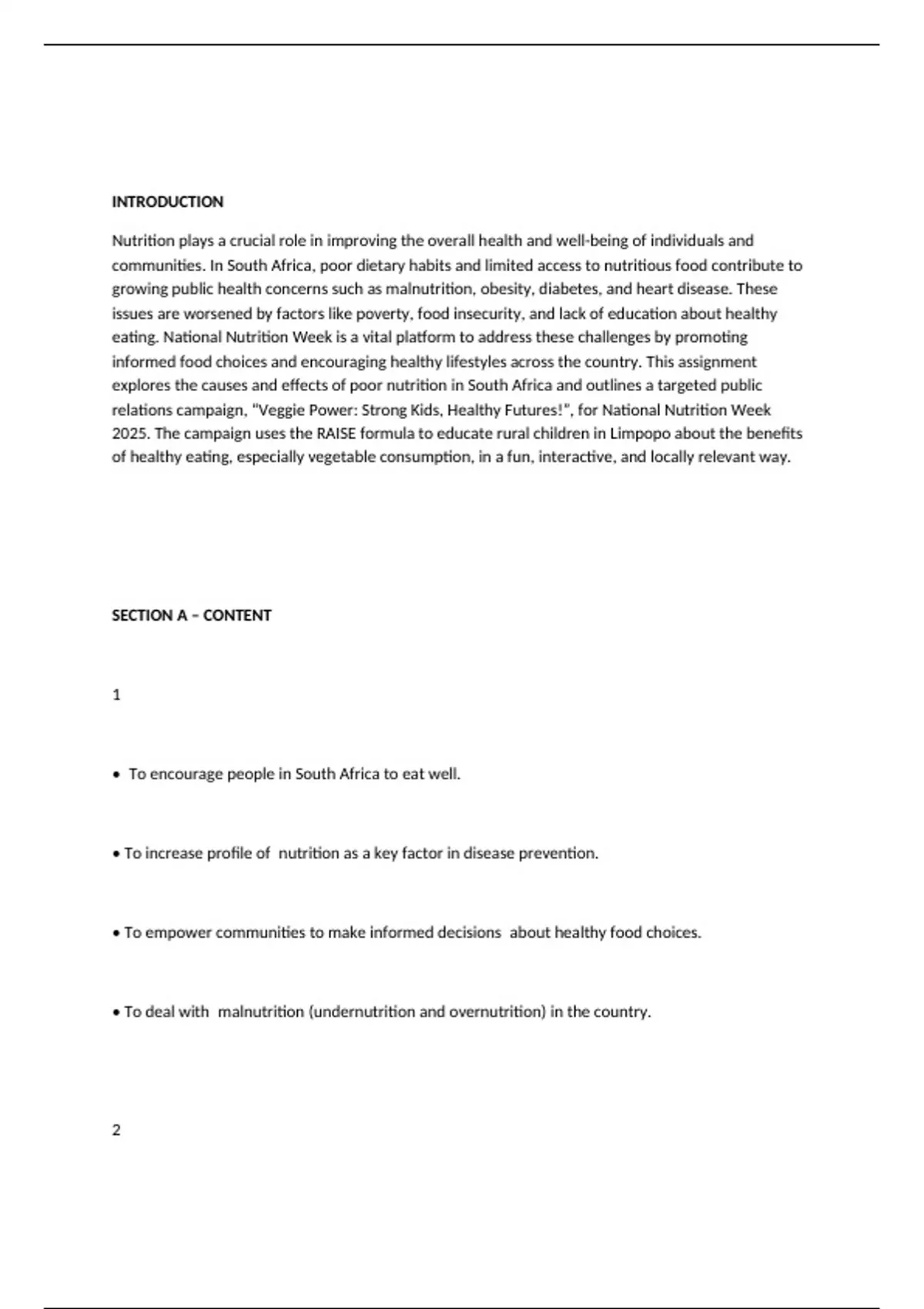 explores the causes and effects of poor nutrition in South Africa and outlines a targeted public