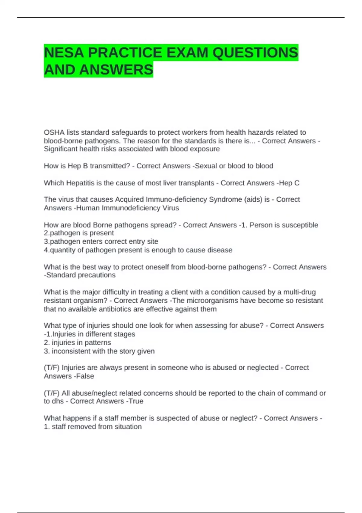 NESA PRACTICE EXAM QUESTIONS AND ANSWERS