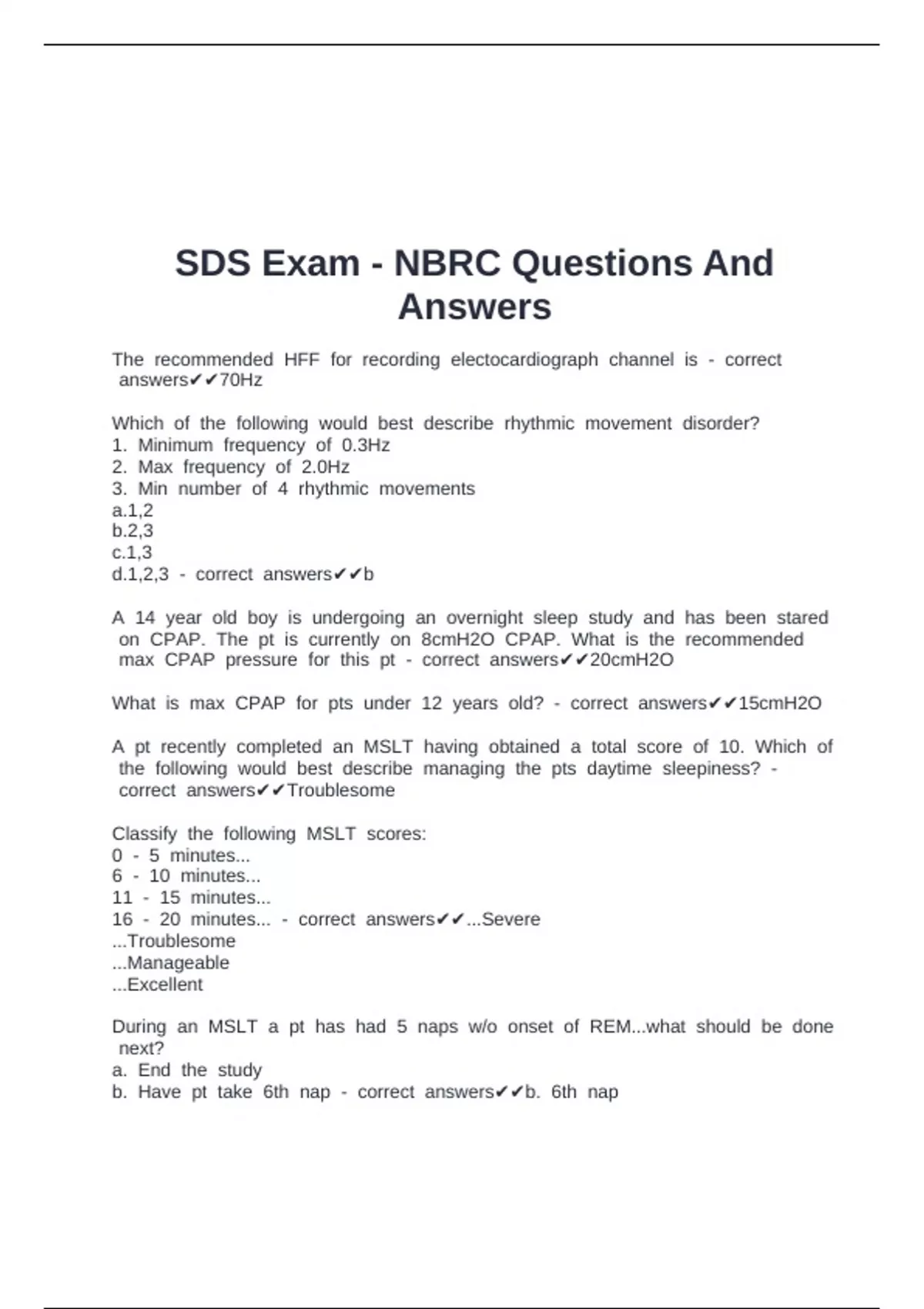 SDS Exam - NBRC Questions And Answers
