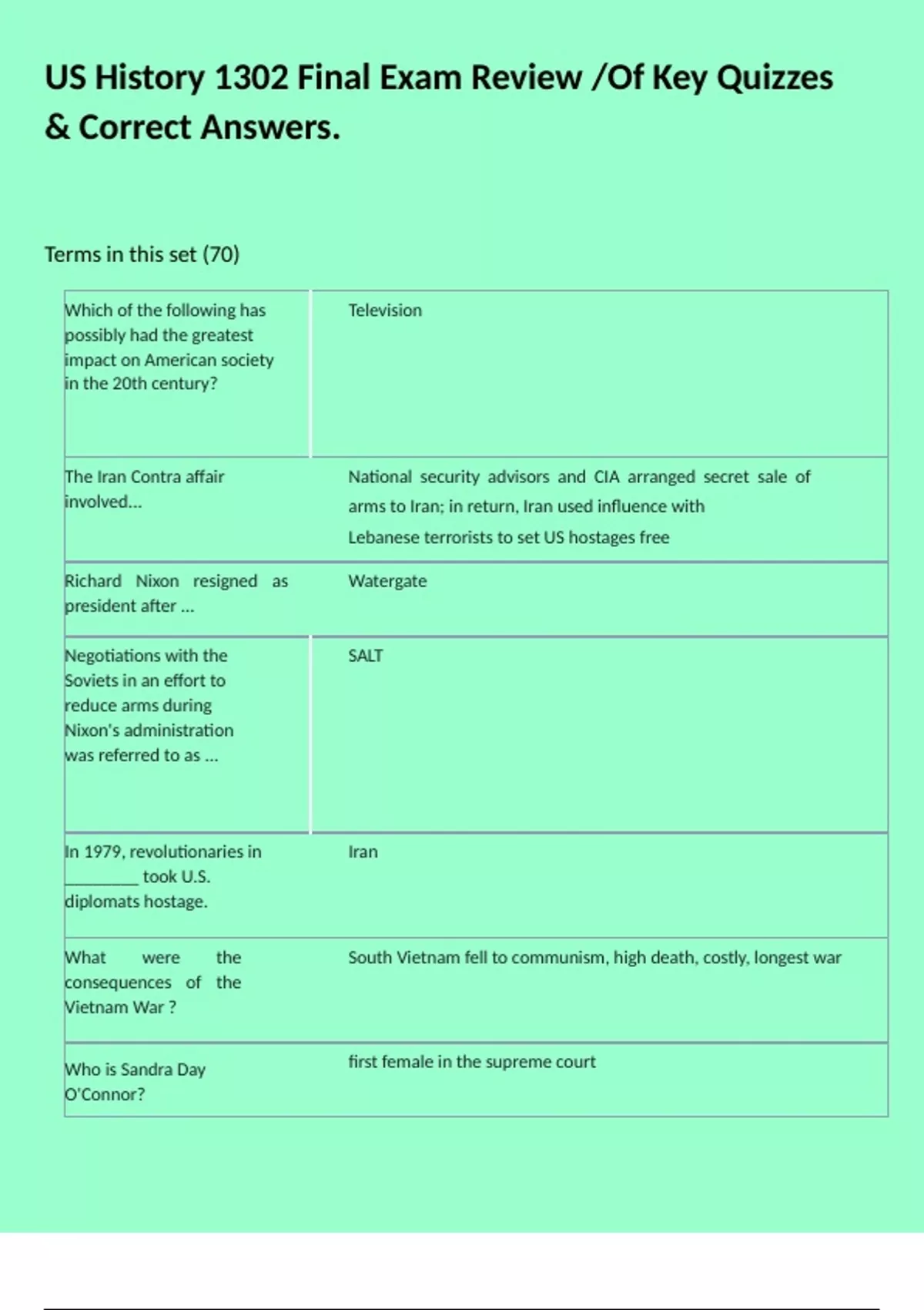 US History 1302 Final Exam Review /Of Key Quizzes & Correct Answers.