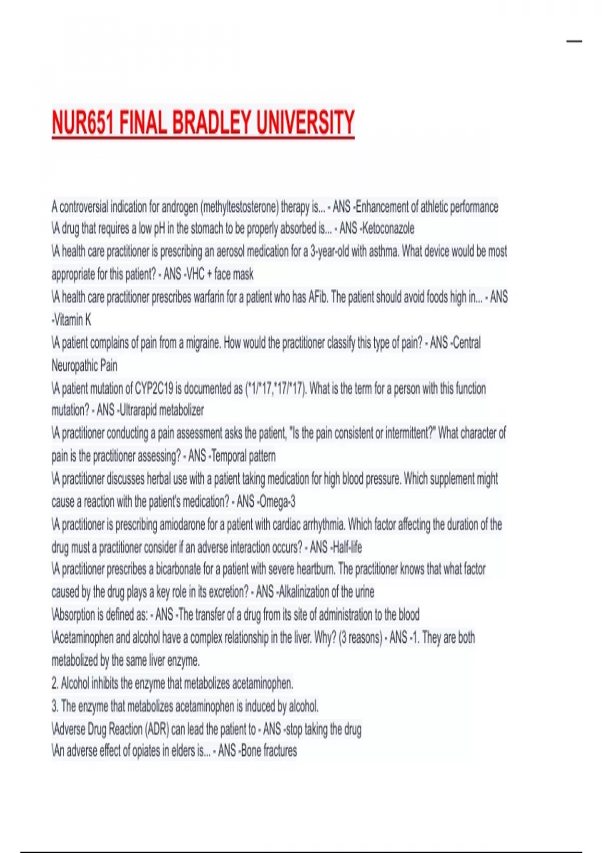 NUR651 FINAL BRADLEY UNIVERSITY Exam 2025/2026 Questions With Completed Solutions.