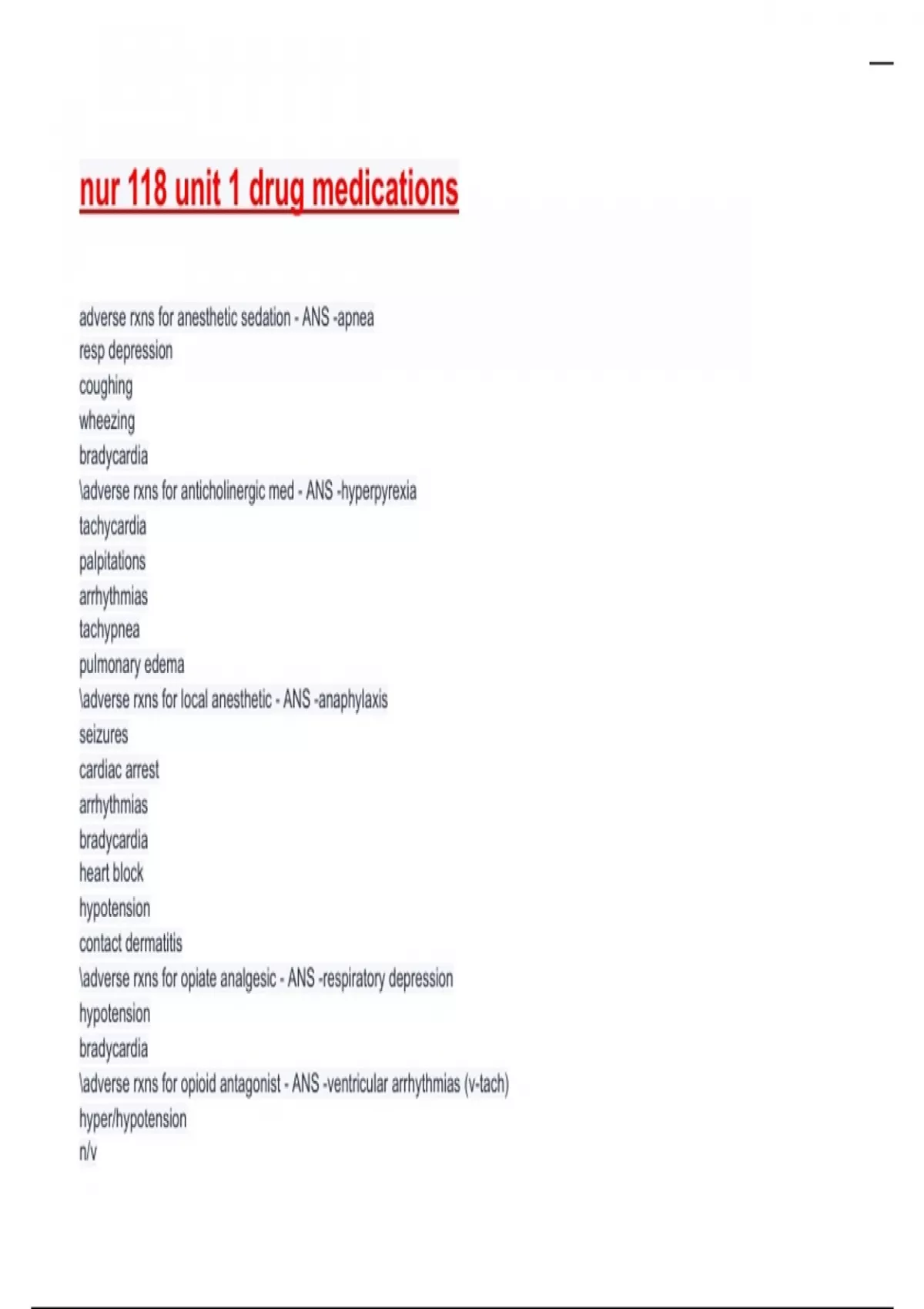 adverse rxns for anesthetic sedation - ANS -apnea