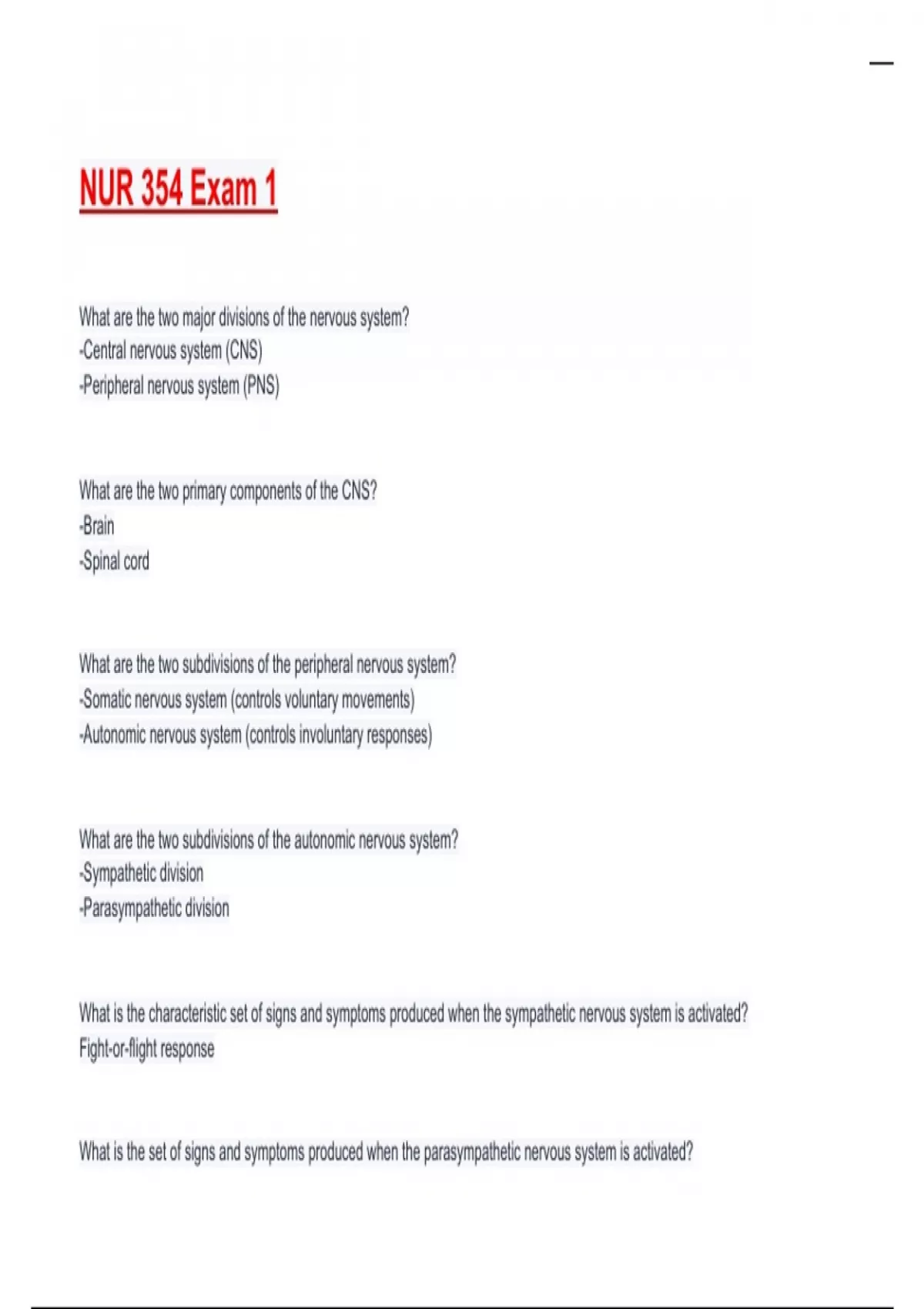 What is the set of signs and symptoms produced when the parasympathetic nervous system is activated?