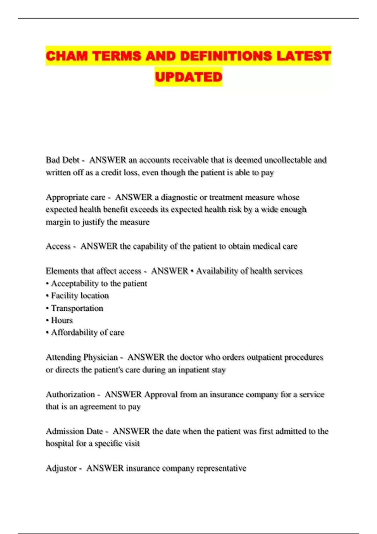 CHAM TERMS AND DEFINITIONS LATEST
