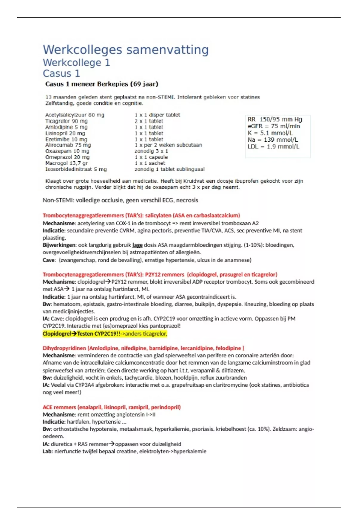 Mechanisme: clopidogrelP2Y12 remmer, blokt irreversibel ADP receptor trombocyt. Soms ook gecombineerd