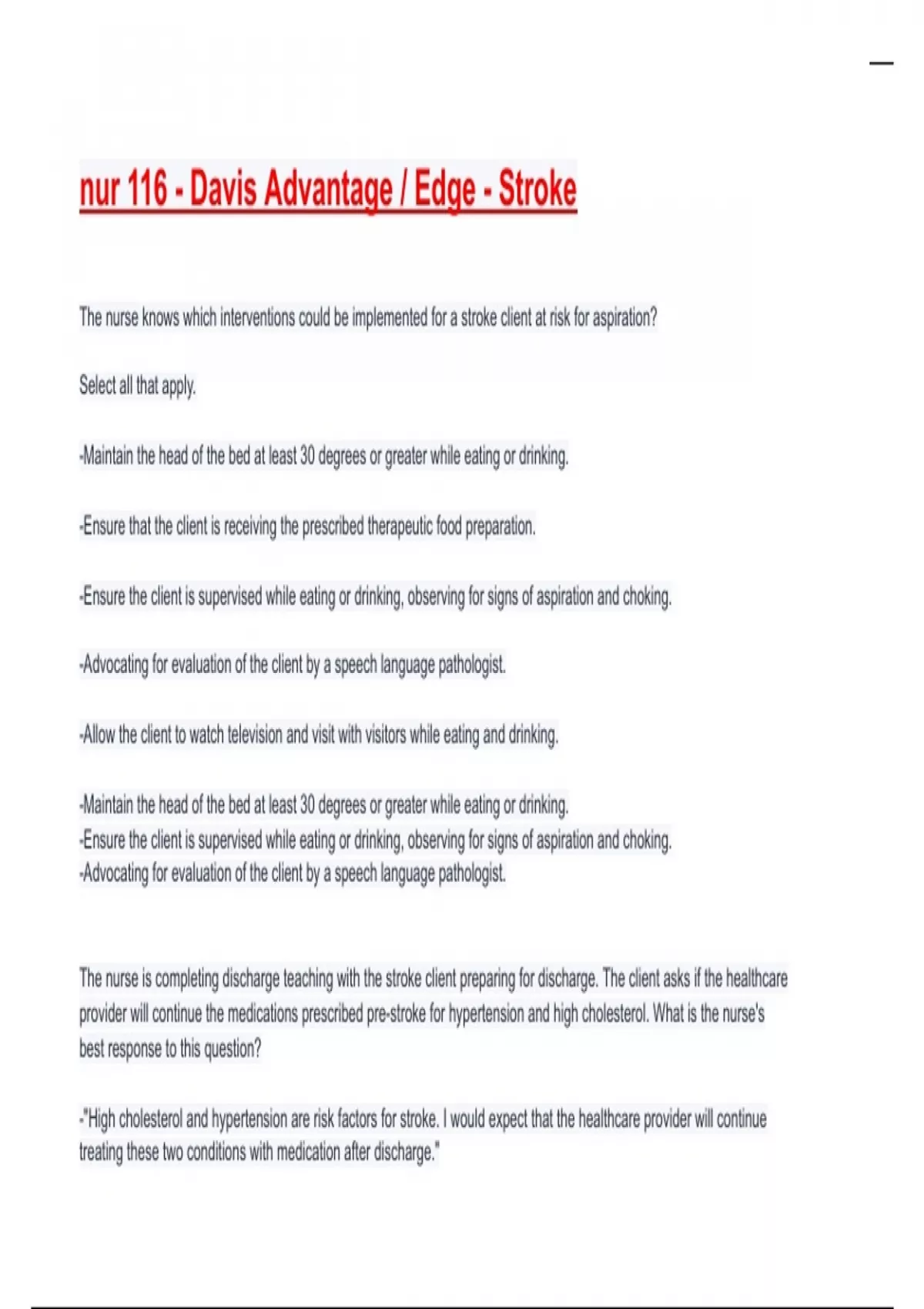 nur 116 - Davis Advantage / Edge - Stroke Exam 2025/2026 Questions With Completed Solutions.