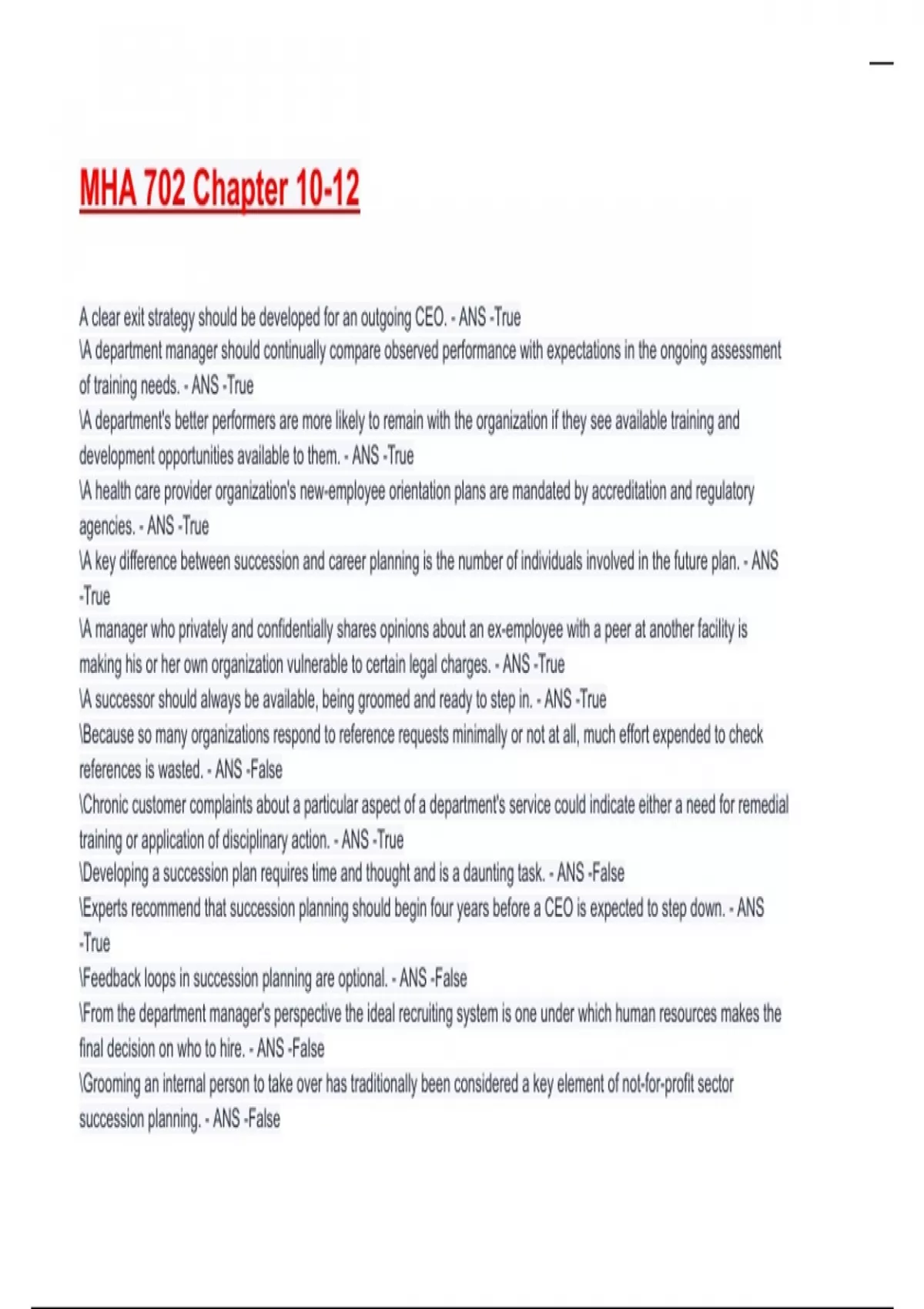MHA 702 Chapter 10-12 Exam 2025/2026 Questions With Completed Solutions.