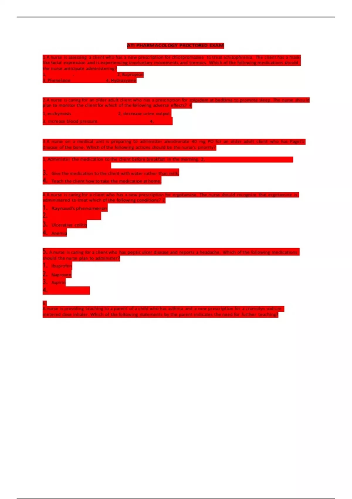 1.A nurse is assessing a client who has a new prescription for chlorpromazine to treat schizophrenia. The client has a mask-